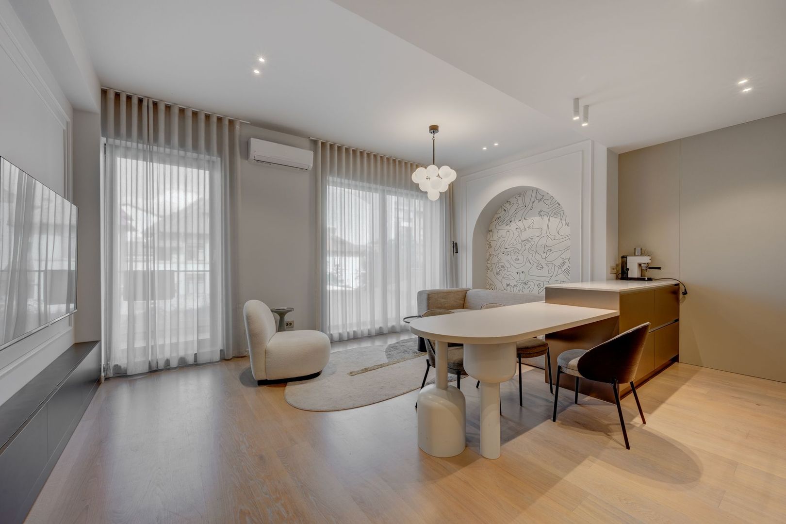 Apartamentul se afla la etajul 1 al unei cladiri cu 4 niveluri, finalizate in anul 2018. Imobilul dispune de finisaje de extrem de buna calitate, acces securizat, ascensor, videointerfon, parcare subterana.