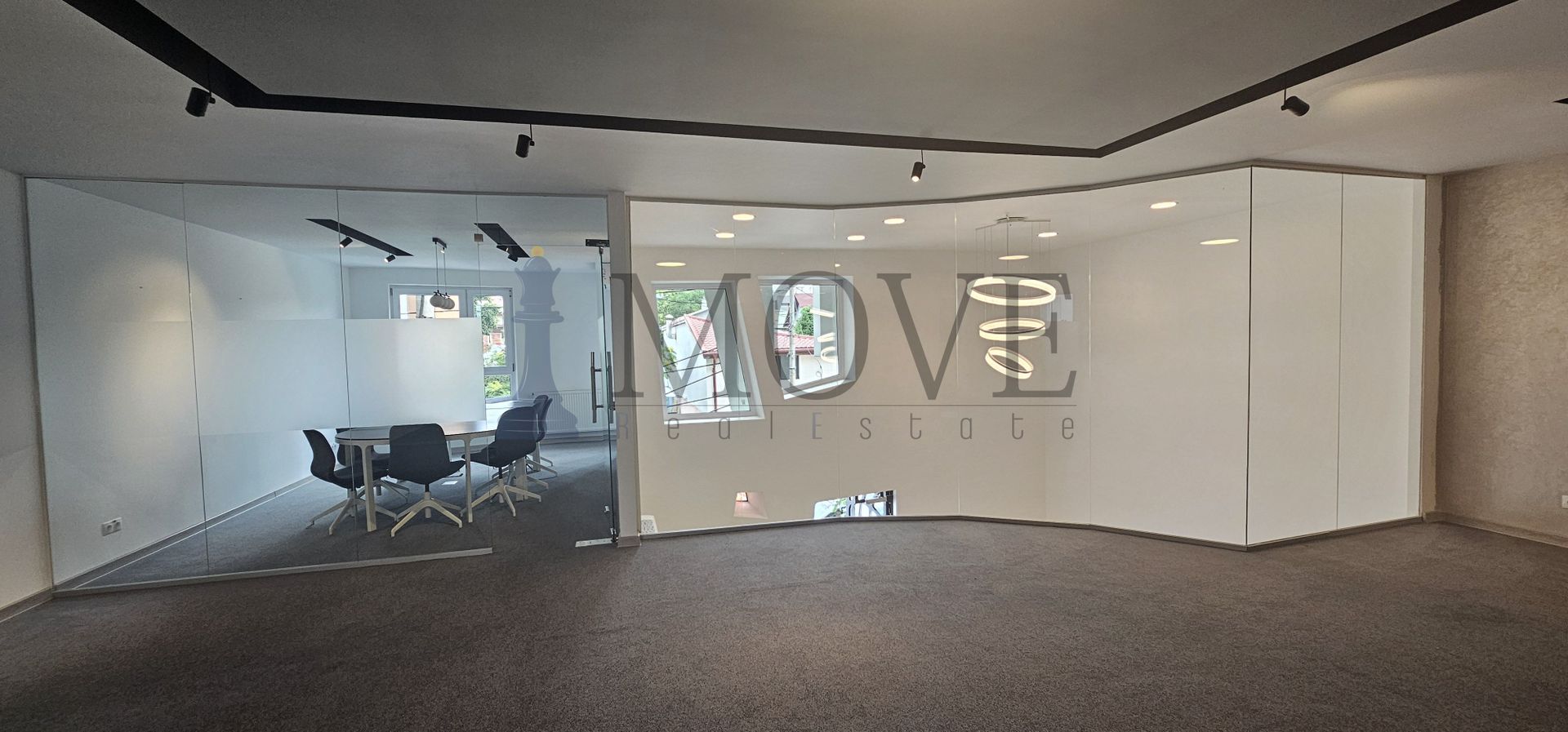 Designul interior minimalist, cu accente industriale și lumină naturală filtrată prin sticlă, creează un cadru ideal pentru branduri care vor să inspire încredere și rafinament.