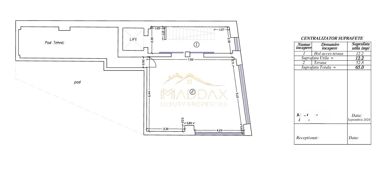 Etajul 4 – 12,2 mp + terasă 52,8 mp
