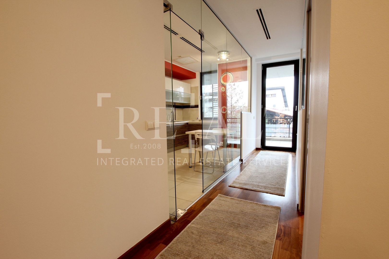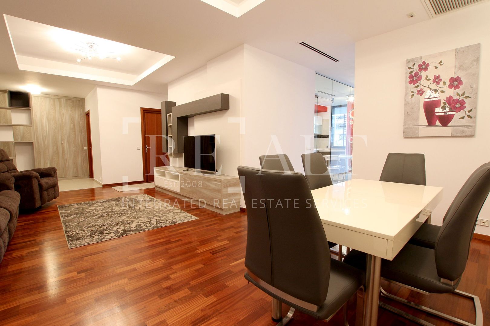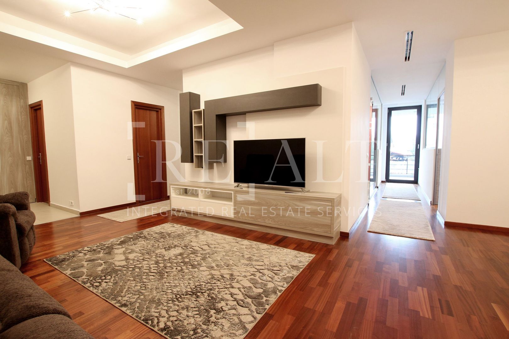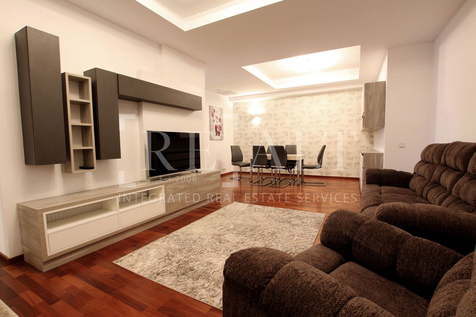 Apartamentul este situat la etajul 2 intr-un imobil P+10 si este de tip semidecomandat. Suprafata utila a acestuia este de 110 mp, la care se adauga o terasa in suprafata de 18mp. Livingul are o suprafata generoasa, iar bucataria de tip open space mareste si mai mult spatiul acestuia. De aici se face accesul spre terasa mobilata cu masute si scaune de exterior. Livingul este impartit in zona de relaxare si zona de dining. Dormitorul matrimonial are atribuit un dressing si un grup sanitar propriu, apartamentul mai avand un al doilea grup sanitar de serviciu pentru invitati.