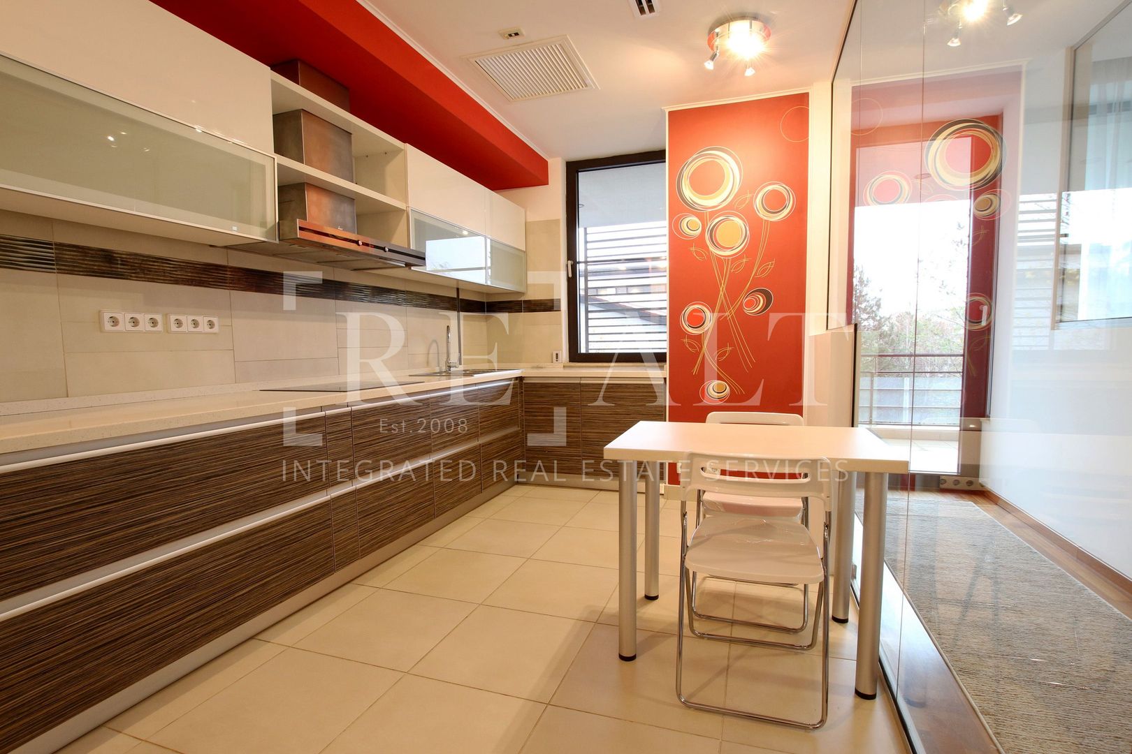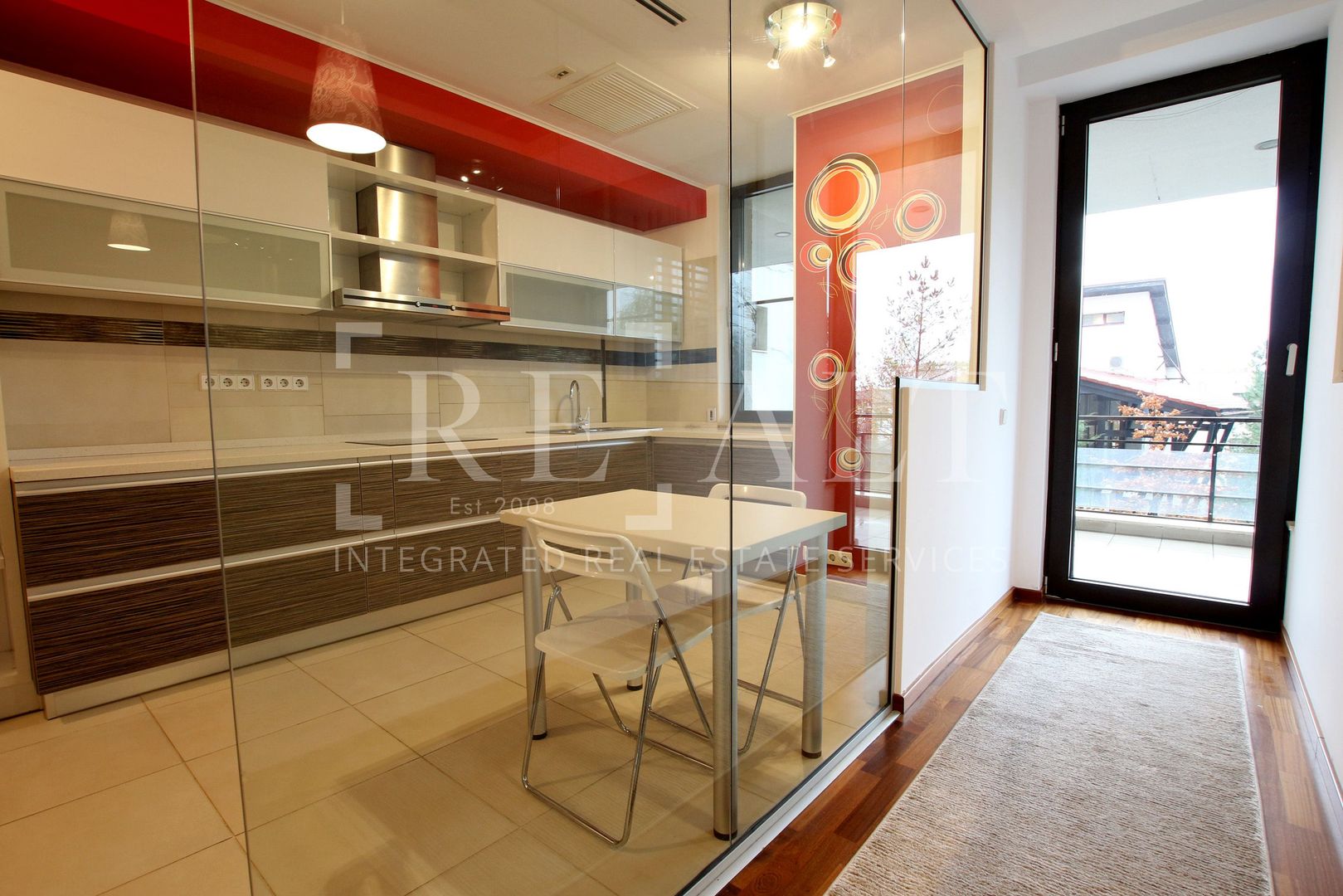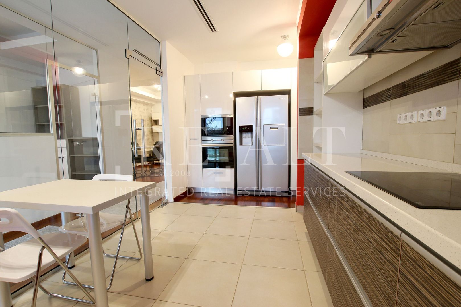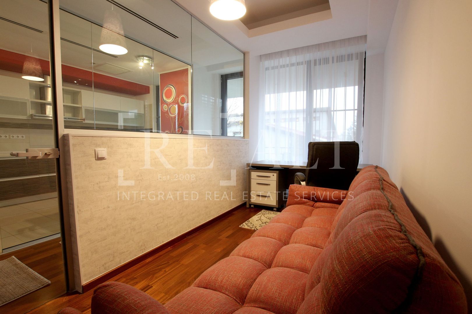 Apartamentul este situat la etajul 2 intr-un imobil P+10 si este de tip semidecomandat. Suprafata utila a acestuia este de 110 mp, la care se adauga o terasa in suprafata de 18mp. Livingul are o suprafata generoasa, iar bucataria de tip open space mareste si mai mult spatiul acestuia. De aici se face accesul spre terasa mobilata cu masute si scaune de exterior. Livingul este impartit in zona de relaxare si zona de dining. Dormitorul matrimonial are atribuit un dressing si un grup sanitar propriu, apartamentul mai avand un al doilea grup sanitar de serviciu pentru invitati.