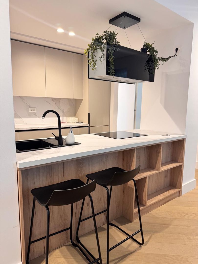 Apartamentul se remarcă prin finisaje de lux, mobilier realizat pe comandă, electrocasnice moderne și un design interior gândit pentru confort și funcționalitate.