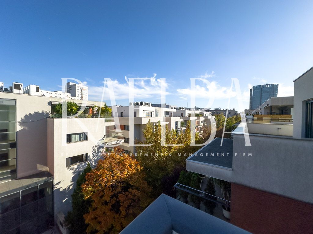 Proprietatea propusă spre închiriere se desfășoară integral pe un singur nivel, cu o suprafață utilă de 215,58 mp și 86,43 mp de terase orientate pe trei laturi. Livingul este completat de o zonă de dining și o bucătărie separată. Zona de noapte cuprinde două dormitoare, fiecare cu baie proprie, o a treia baie suplimentară, al treilea dormitor transformat în dressing și un laundry room. Finisajele sunt premium, iar lumina naturală definește spațiul pe tot parcursul zilei. Mobilarea se poate adapta în funcție de preferințele viitorului chiriaș.
