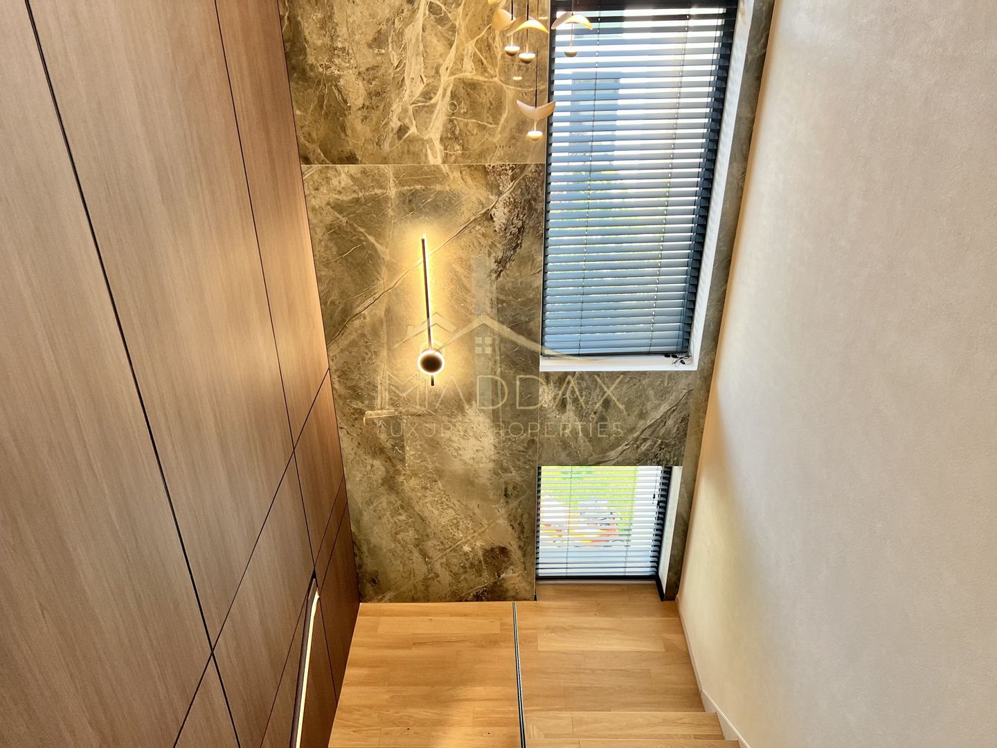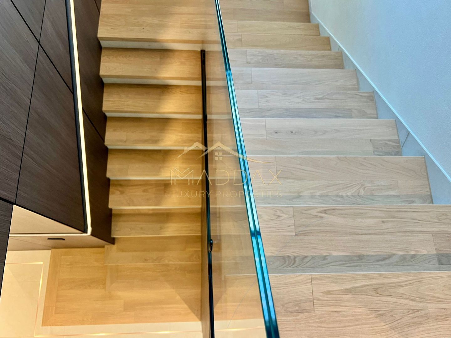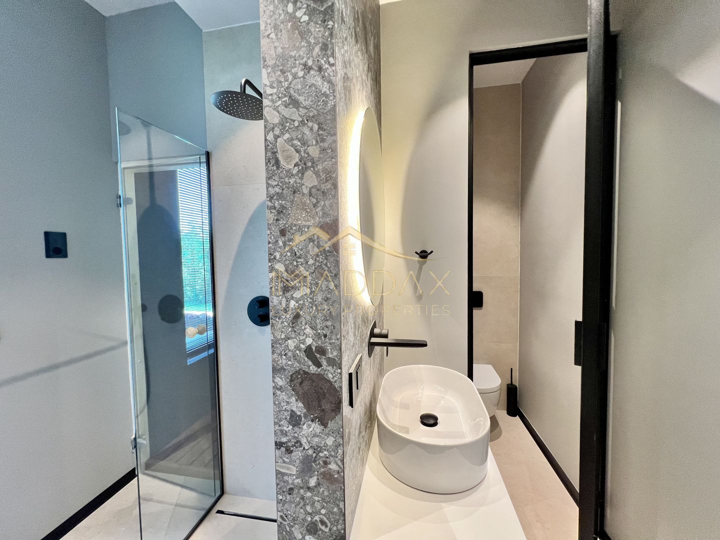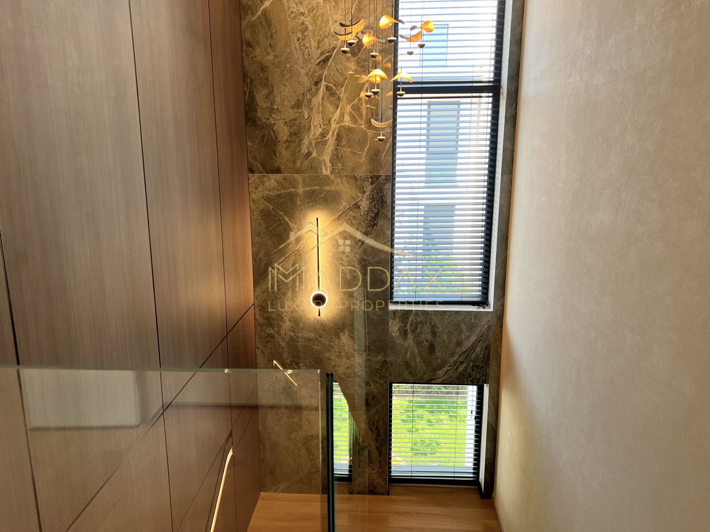 Proprietățile impresionează prin arhitectura modernă, compartimentarea eficientă și utilizarea materialelor premium. Zona privată de SPA include o **saună cu vedere panoramică** și un **jacuzzi exterior**, ideale pentru relaxare în intimitate. Dormitoarele sunt prevăzute cu **dressinguri realizate în Italia**, iar bucătăria premium, de origine germană, este complet echipată cu **tehnologie smart de ultimă generație**.