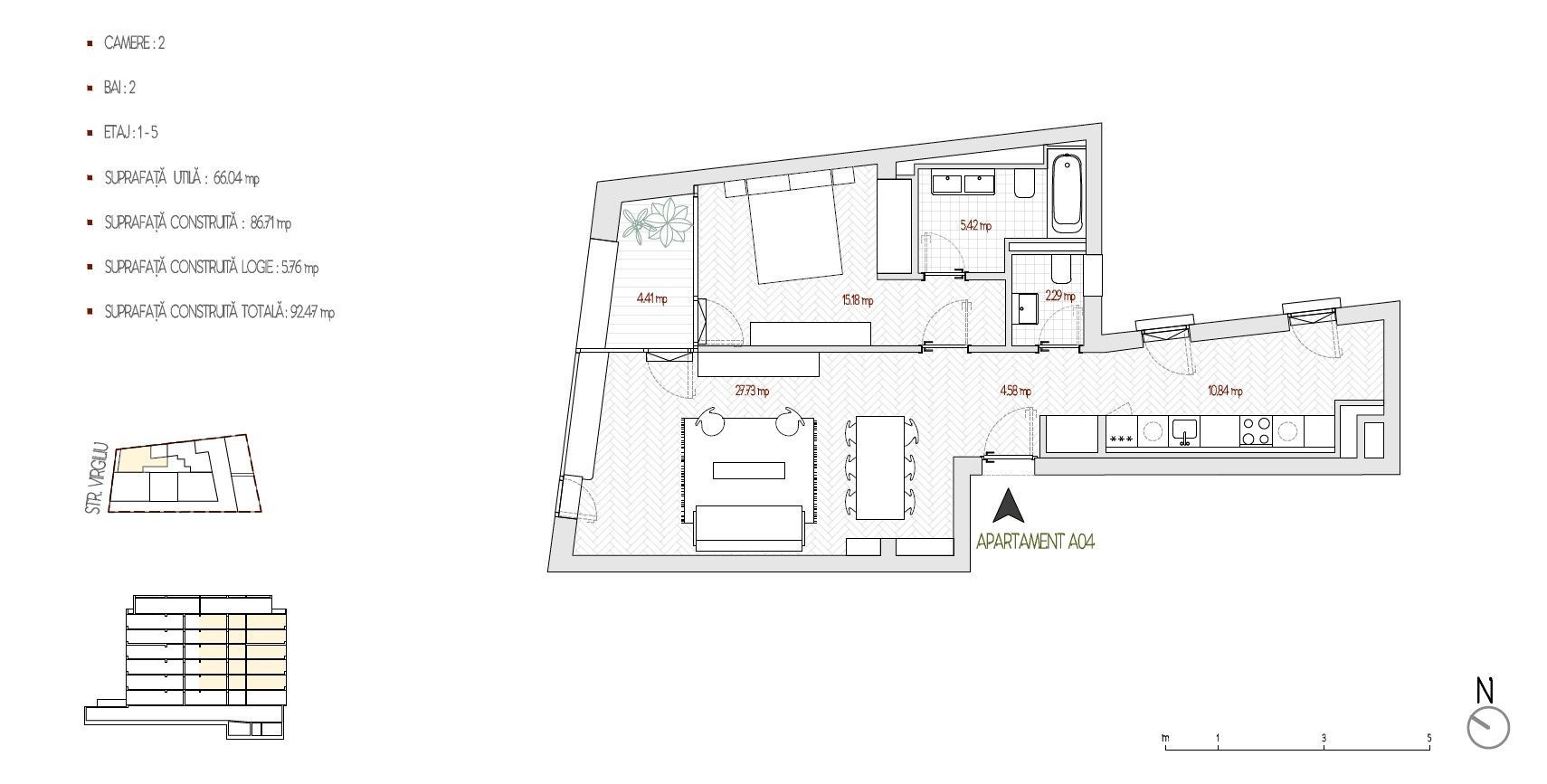 - suprafață utilă 66.04 mp + 1 terasa de 4.41 mp