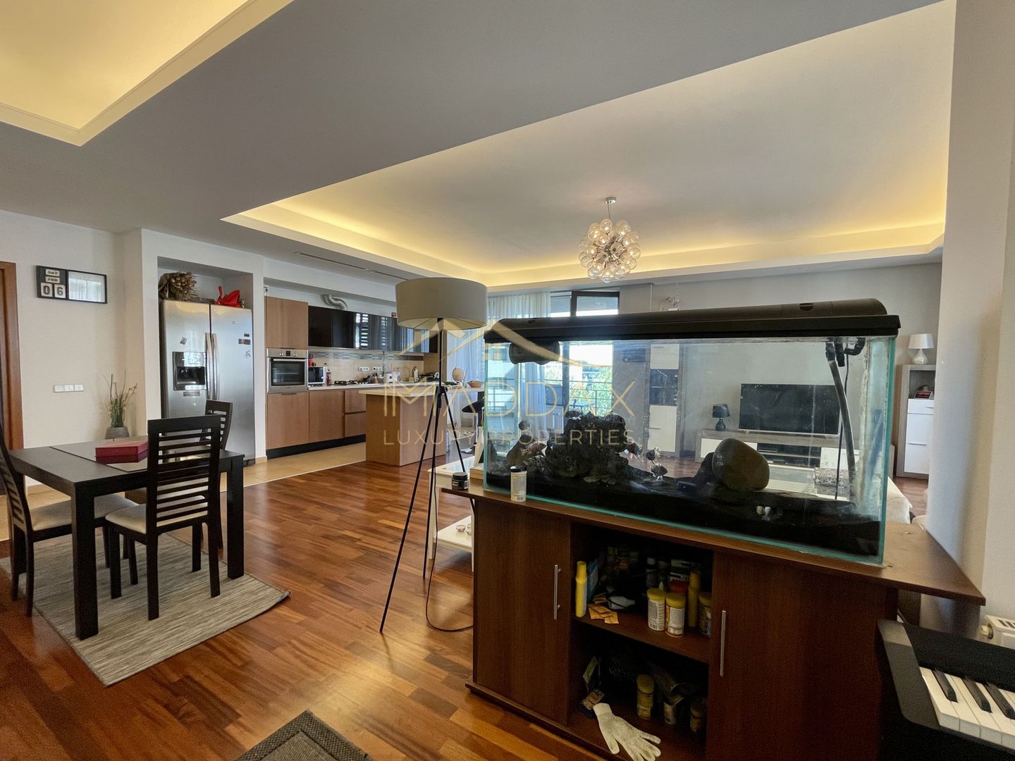 Proprietatea are o suprafata utila de 156mp si 2 terase cu vedere libera spre oras in suprafata de 26.6mp respectiv 16mp si este compartimentata astfel: living + dinning in suprafata de 54mp cu posibilitate de iesire pe ambele terase, bucatarie open space, 2 dormitoare generoase, 26mp si 20.5mp, dressing si 3 bai dotate cu cabina de dus si cada.