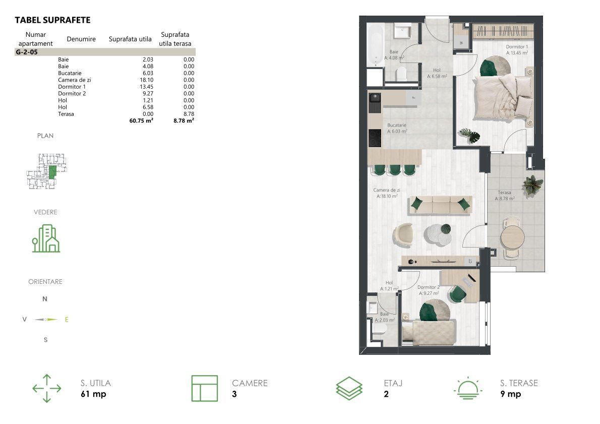 • Pereți interiori din gips-carton de 12.5 cm, cu izolație fono și termo, pentru un confort sporit.