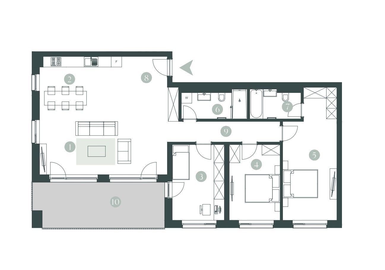 Interiorul acestui apartament este proiectat cu atenție pentru a oferi un spațiu deschis, luminos și optimizat pentru confort, beneficiind de materiale premium și dotări moderne.