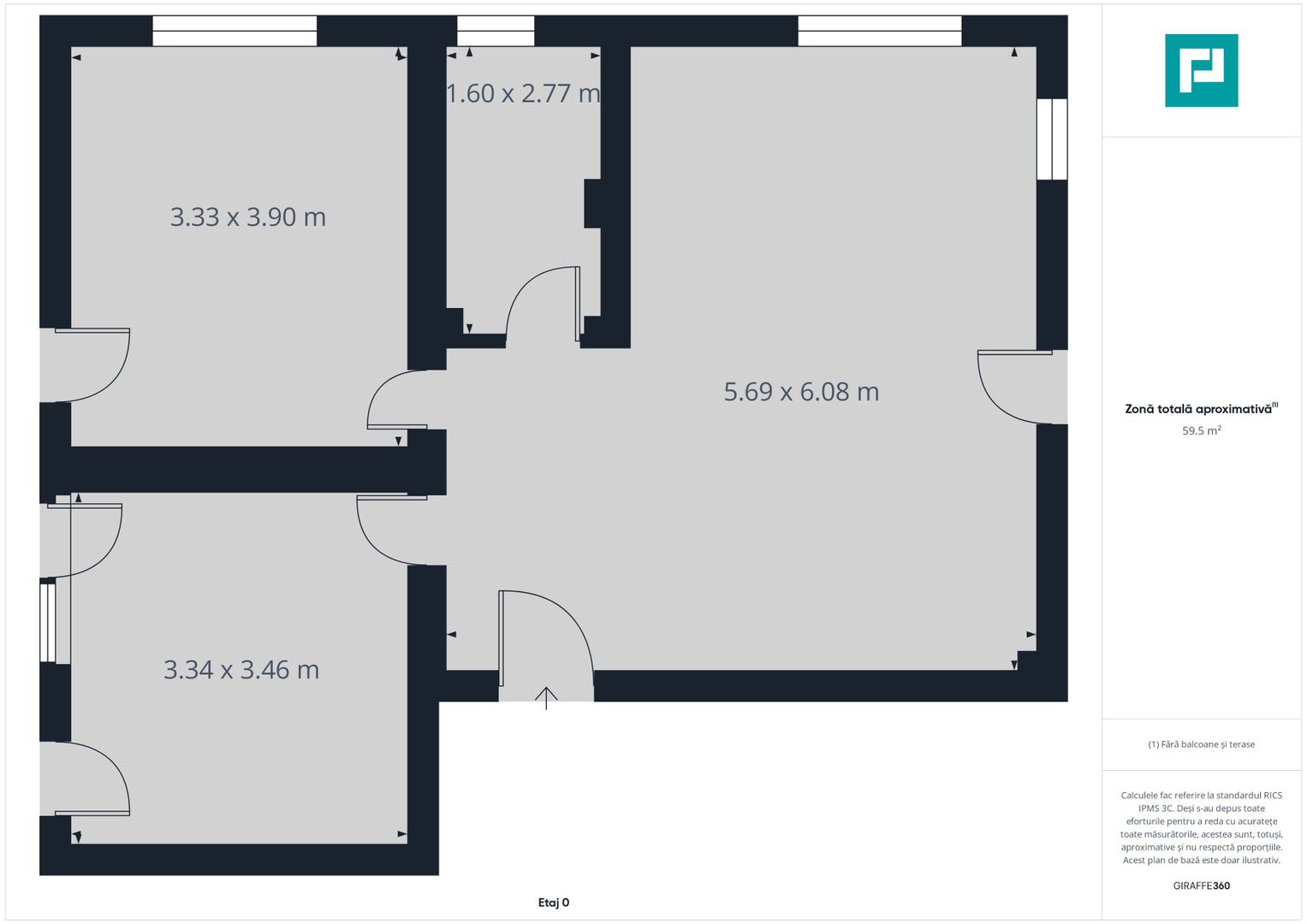 Suprafață utilă: 59,5 mp