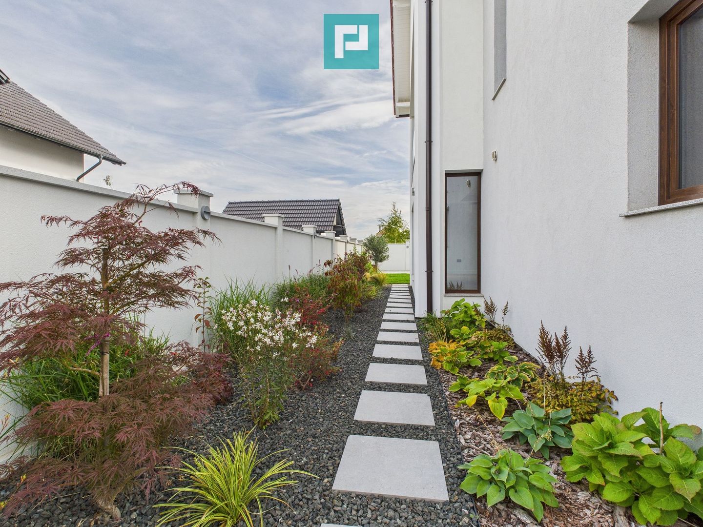 • Terasa acoperită și spațiu verde cu gazon, plante ornamentale și sistem automat de irigare