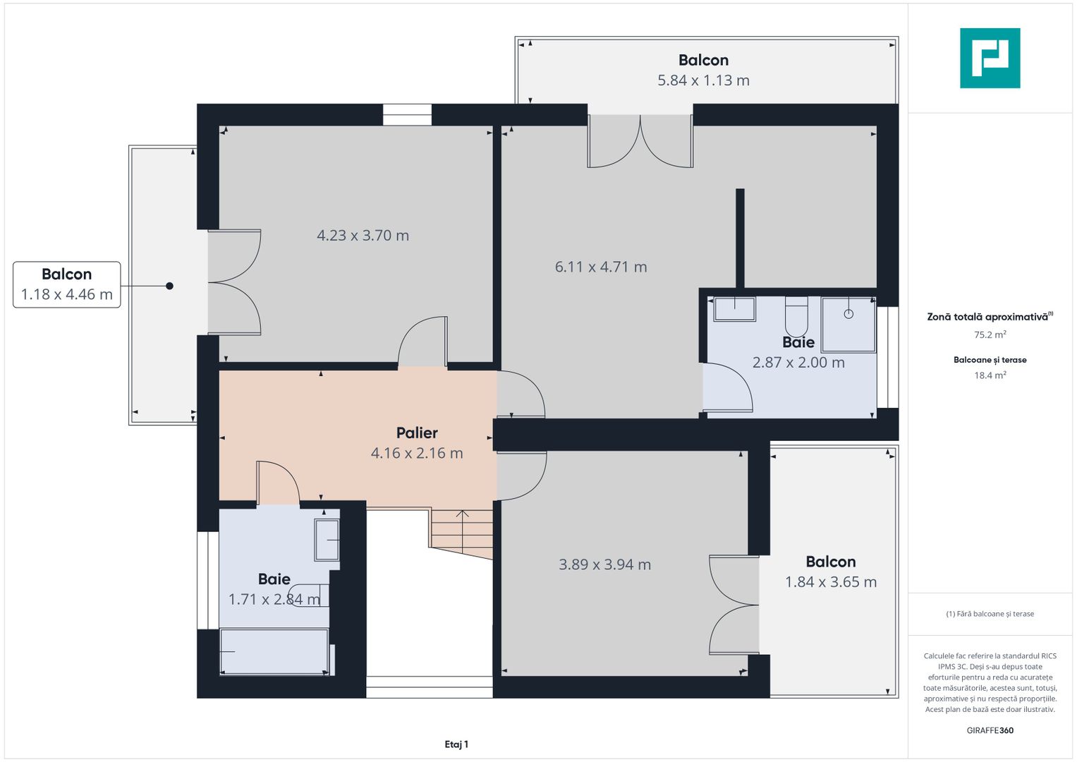• Holuri spațioase, 3 balcoane și terasă acoperită complet utilată