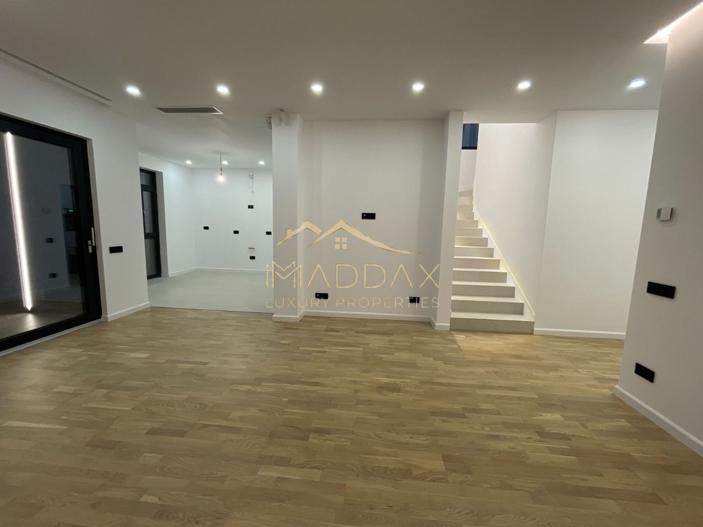 7. CURENTI PUTERNICI: *Cabluri de cupru; *Cablu suplimentar la fiecare comutator pentru sistem SMART; *Preinstalare pentru panouri fotovoltaice; * Instalatie electrica exterioara/panou exterior pentru 380 V; * Priza externa pentru incarcare masini electrice; *Sigurante Schneider parter si etaj; *Dispozitive modulare Bticino Italia Seria Living Now; *Exteriorul casi si gardul sunt iluminate prin lumini LED si aplice; *Iluminare interioara ambientala LED.