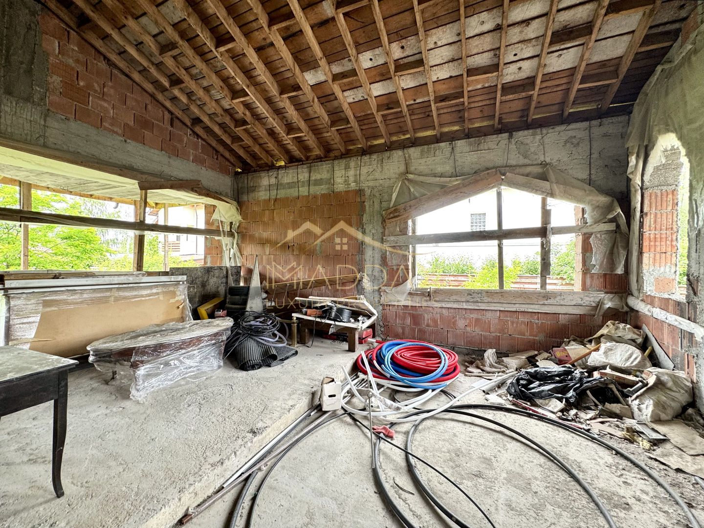 Vila, aflată în stadiul de construcție la gri, oferă un avantaj semnificativ: libertatea de a fi personalizată după gustul și nevoile viitorului proprietar. Configurația actuală este ideală pentru o locuință spațioasă, dar terenul generos permite dezvoltarea ulterioară a proprietății, fiind suficient loc pentru: