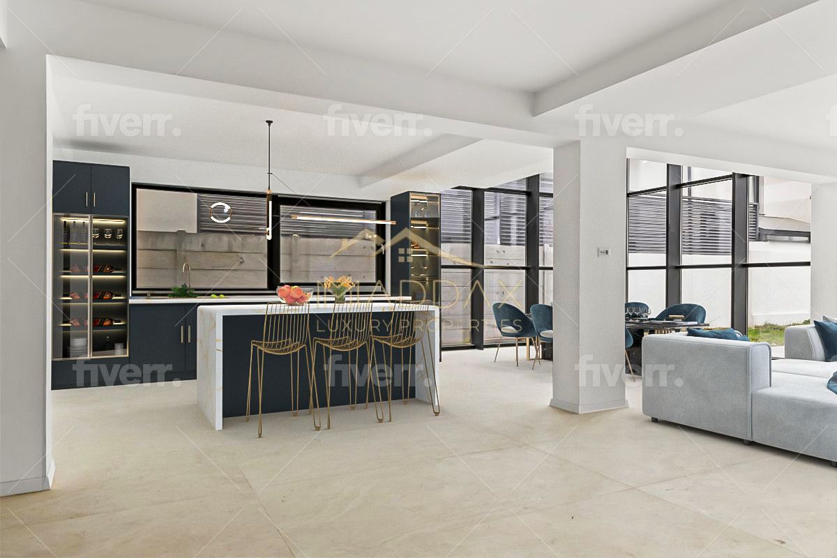 Proiectată pentru confort și rafinament, proprietatea oferă un stil de viață modern, spații generoase și lumină naturală din abundență, datorită geamurilor mari.