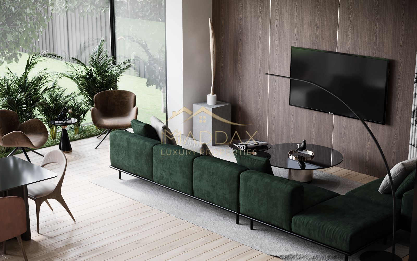 Maddax are placerea sa prezinte o vila exclusivista in linii arhitecturale curate și o estetică minimalistă ce adoptă conceptul de plan deschis pentru a crea un spațiu aerisit și confortabil, casa îmbină curenții de arhitectură contemporană și modernă utilizându-se de materiale naturale precum sticlă, metal și lemn pentru a integra peisajul înconjurător.