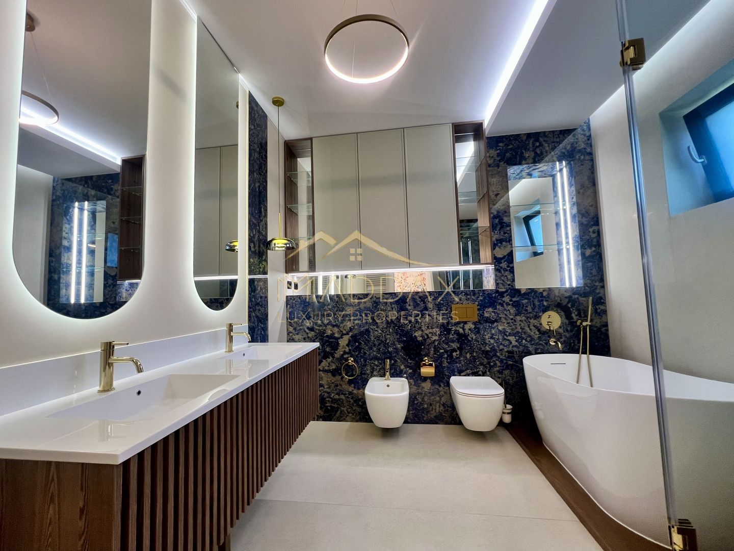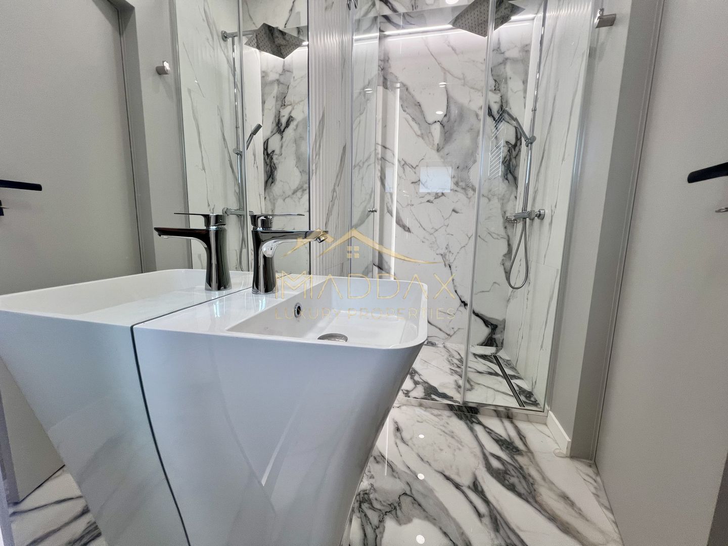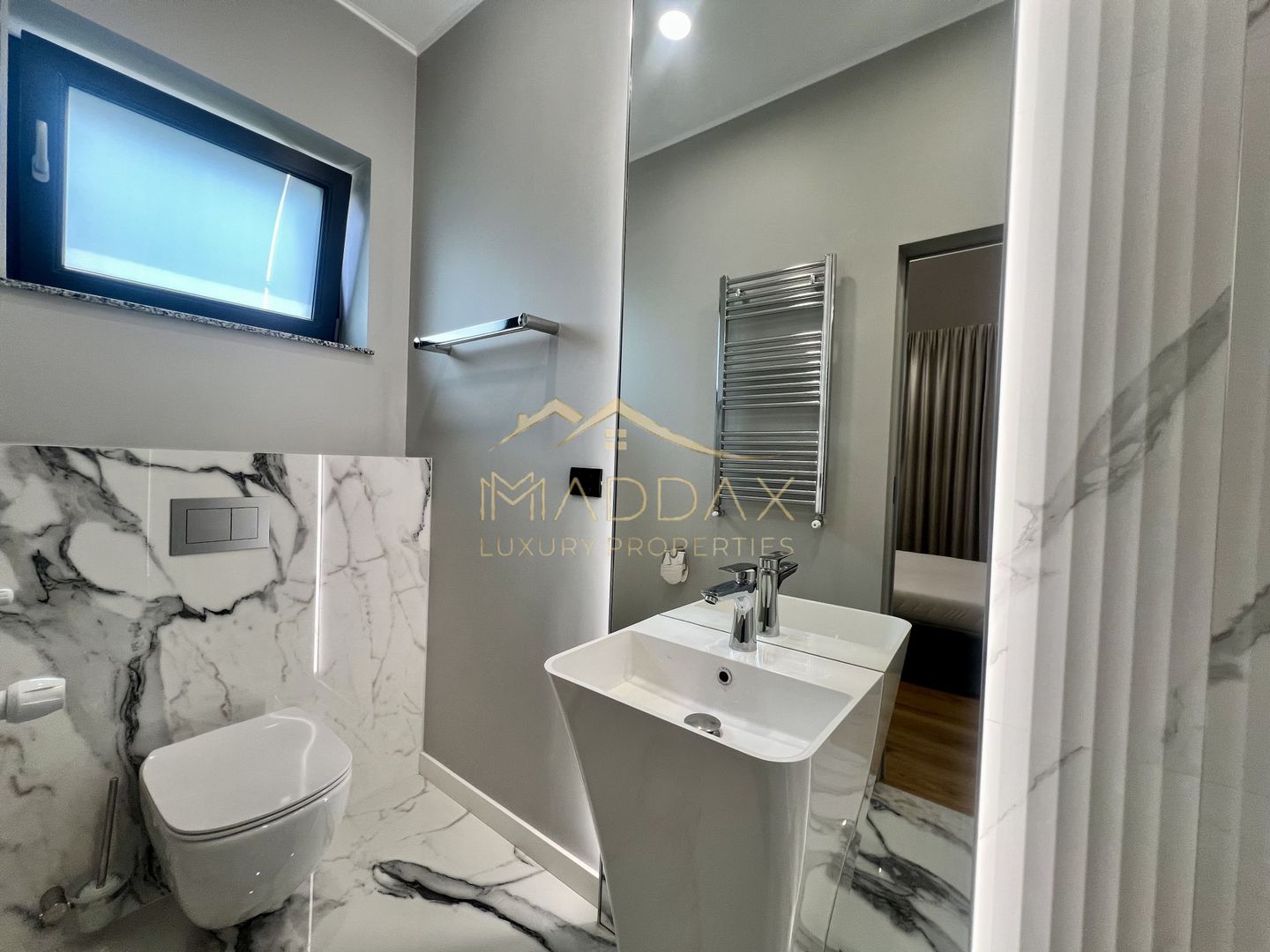 **Etajul 1** este dedicat confortului, găzduind un dormitor matrimonial cu baie proprie, dressing și terasă privată, oferind un loc perfect pentru a te deconecta după o zi lungă. Un dormitor de oaspeți, cu baie proprie, poate fi ușor transformat într-un birou, adaptându-se astfel nevoilor tale.