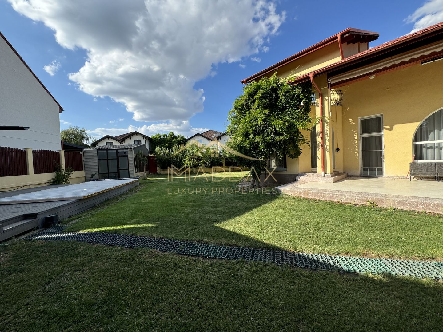 Gradina spatioasa a vilei este de o oază de relaxare in mijlocul naturii. Aici regasim piscina privată cu jacuzzi, un foisor cu bucatarie amenajata, complet mobilata si utilata și un spațiu de depozitare adiacent.