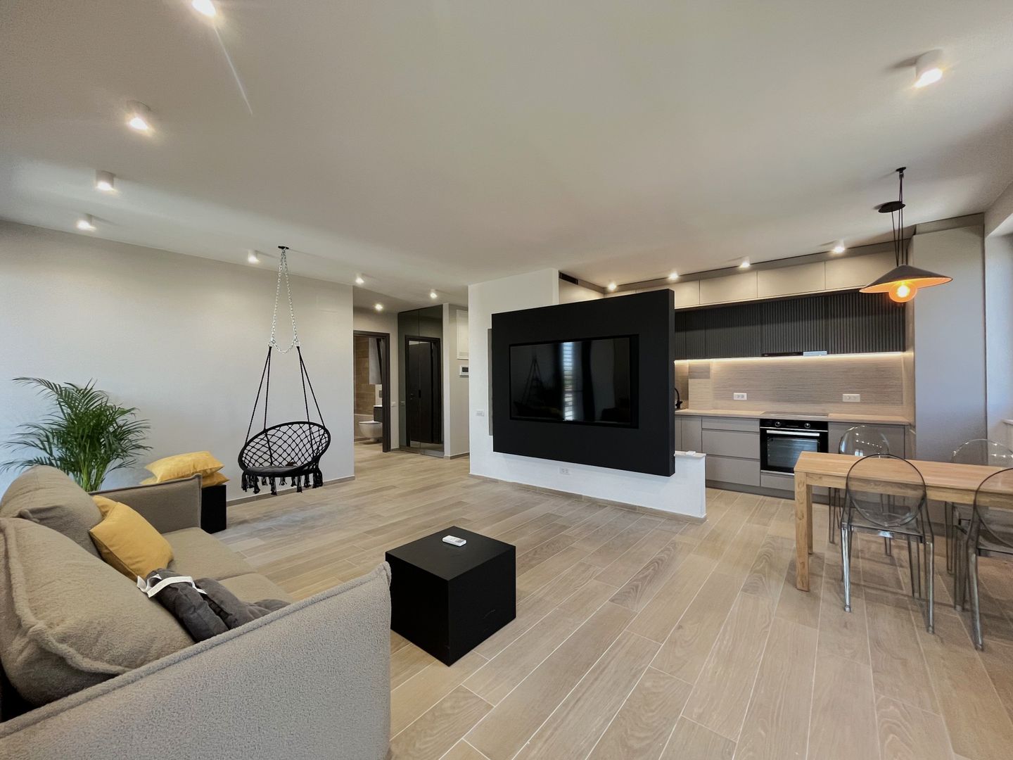 - bucatarie semi inchisa cu living foarte spatios,