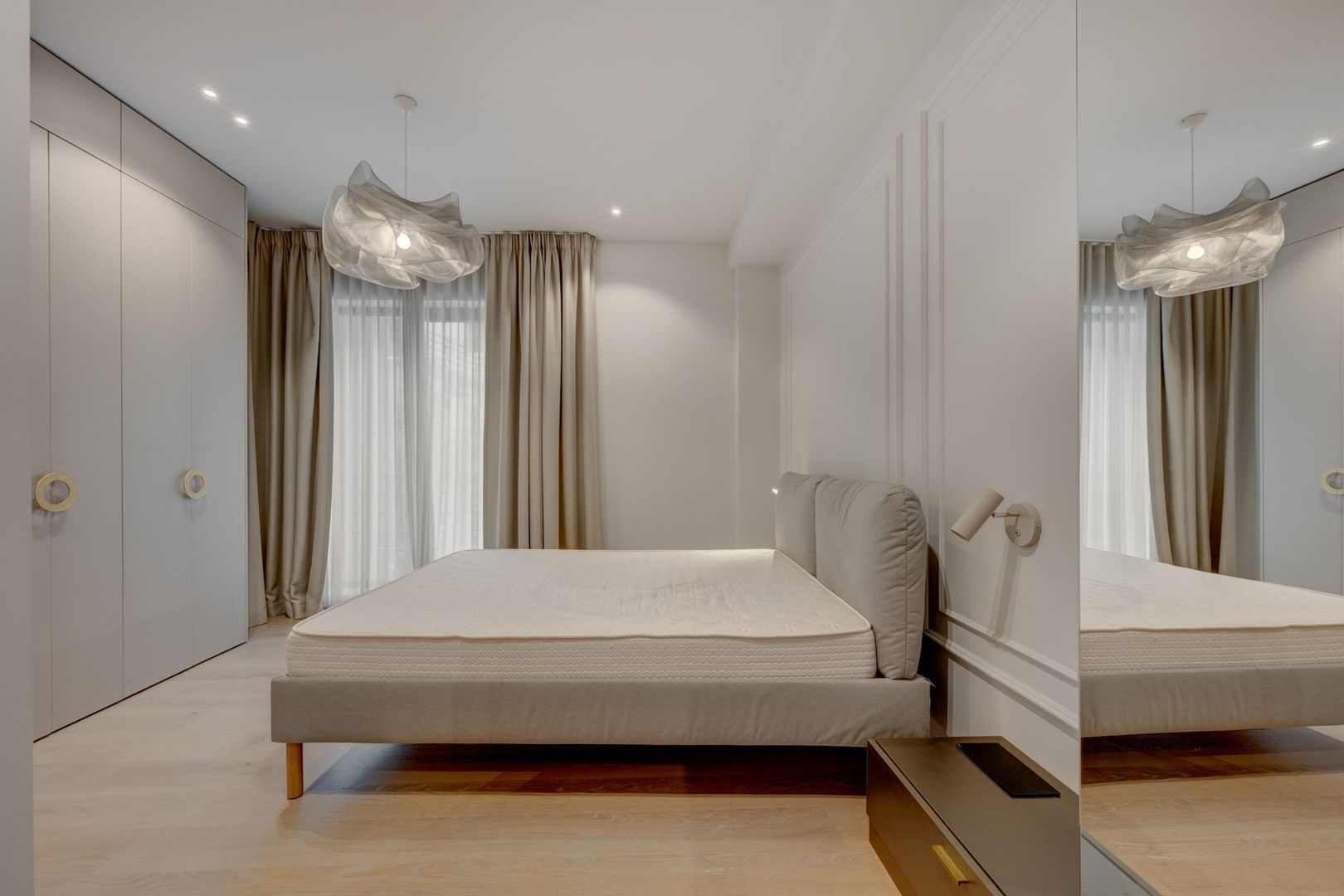 Apartamentul se afla la etajul 1 al unei cladiri cu 4 niveluri, finalizate in anul 2018. Imobilul dispune de finisaje de extrem de buna calitate, acces securizat, ascensor, videointerfon, parcare subterana.