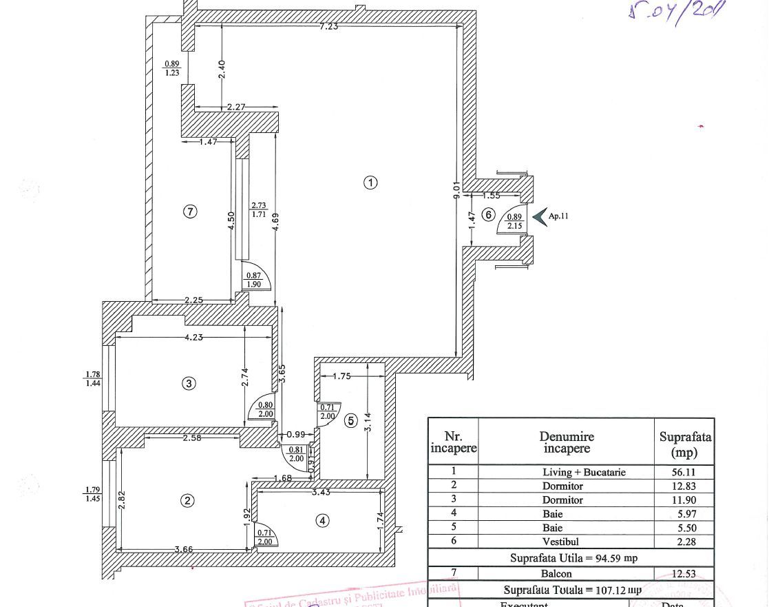 Apartamentul dispune de o suprafata utila totala de 107.12 mp, dispune de o bucatarie open space, 2 grupuri sanitare, 1 balcon, iar orientarea cardinala este Nord-Vest.