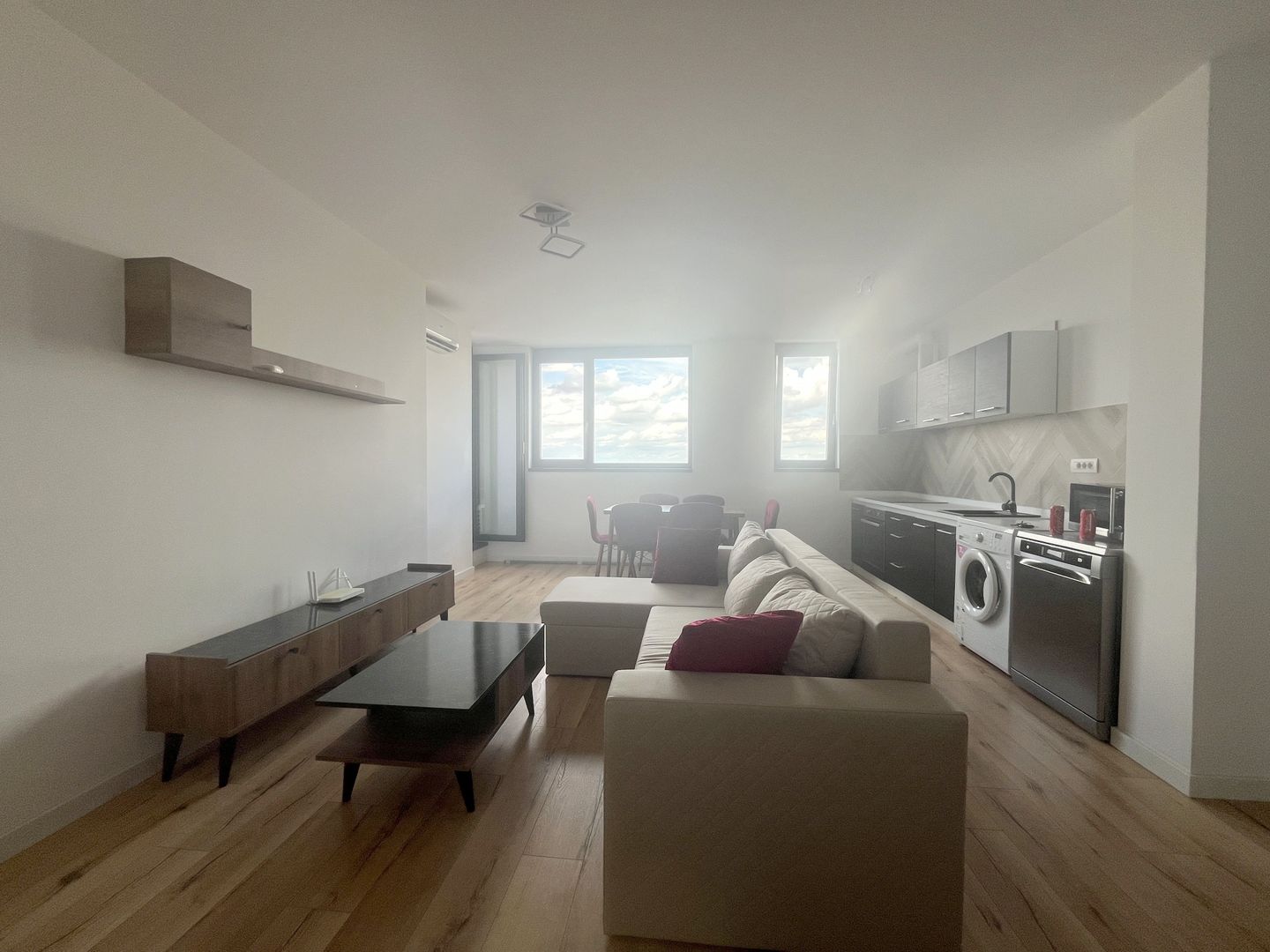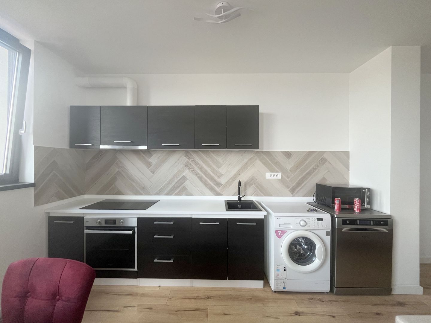 Living spațios open-space cu bucătărie complet utilată și ieșire pe balcon