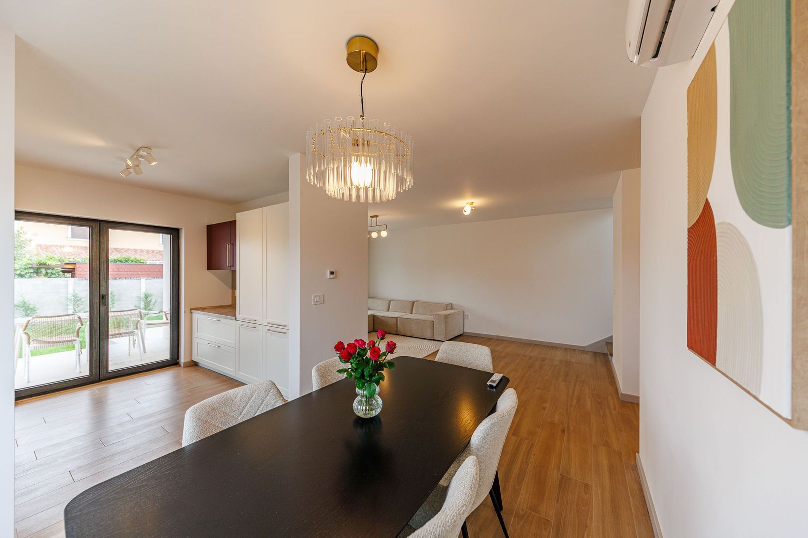 Această casă nouă, gândită și amenajată cu atenție la detalii, îmbină perfect funcționalitatea cu designul contemporan, oferind un spațiu primitor și luminos, ideal pentru o familie care caută un cămin echilibrat între natură și urban.