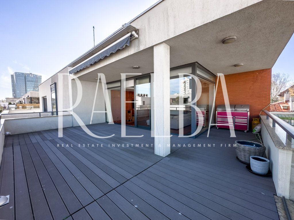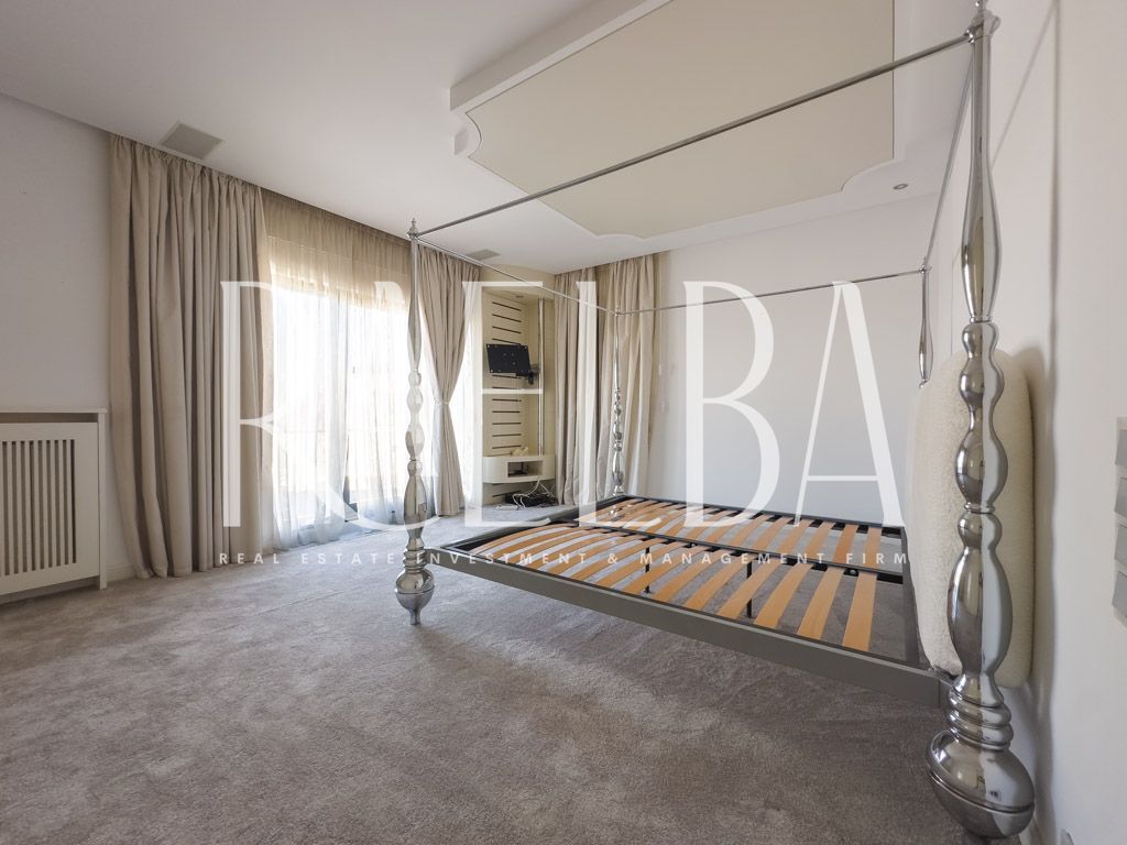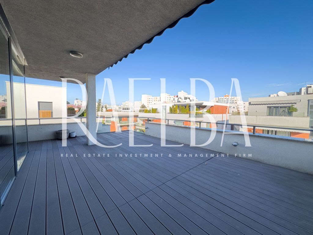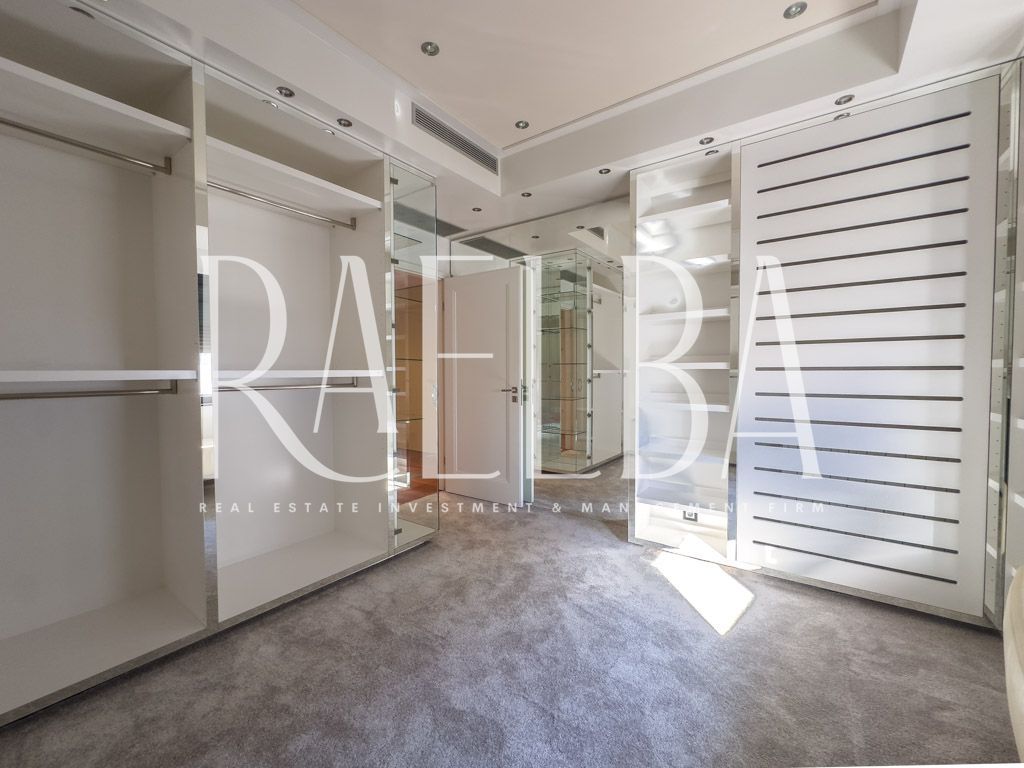 Proprietatea propusă spre închiriere se desfășoară integral pe un singur nivel, cu o suprafață utilă de 215,58 mp și 86,43 mp de terase orientate pe trei laturi. Livingul este completat de o zonă de dining și o bucătărie separată. Zona de noapte cuprinde două dormitoare, fiecare cu baie proprie, o a treia baie suplimentară, al treilea dormitor transformat în dressing și un laundry room. Finisajele sunt premium, iar lumina naturală definește spațiul pe tot parcursul zilei. Mobilarea se poate adapta în funcție de preferințele viitorului chiriaș.