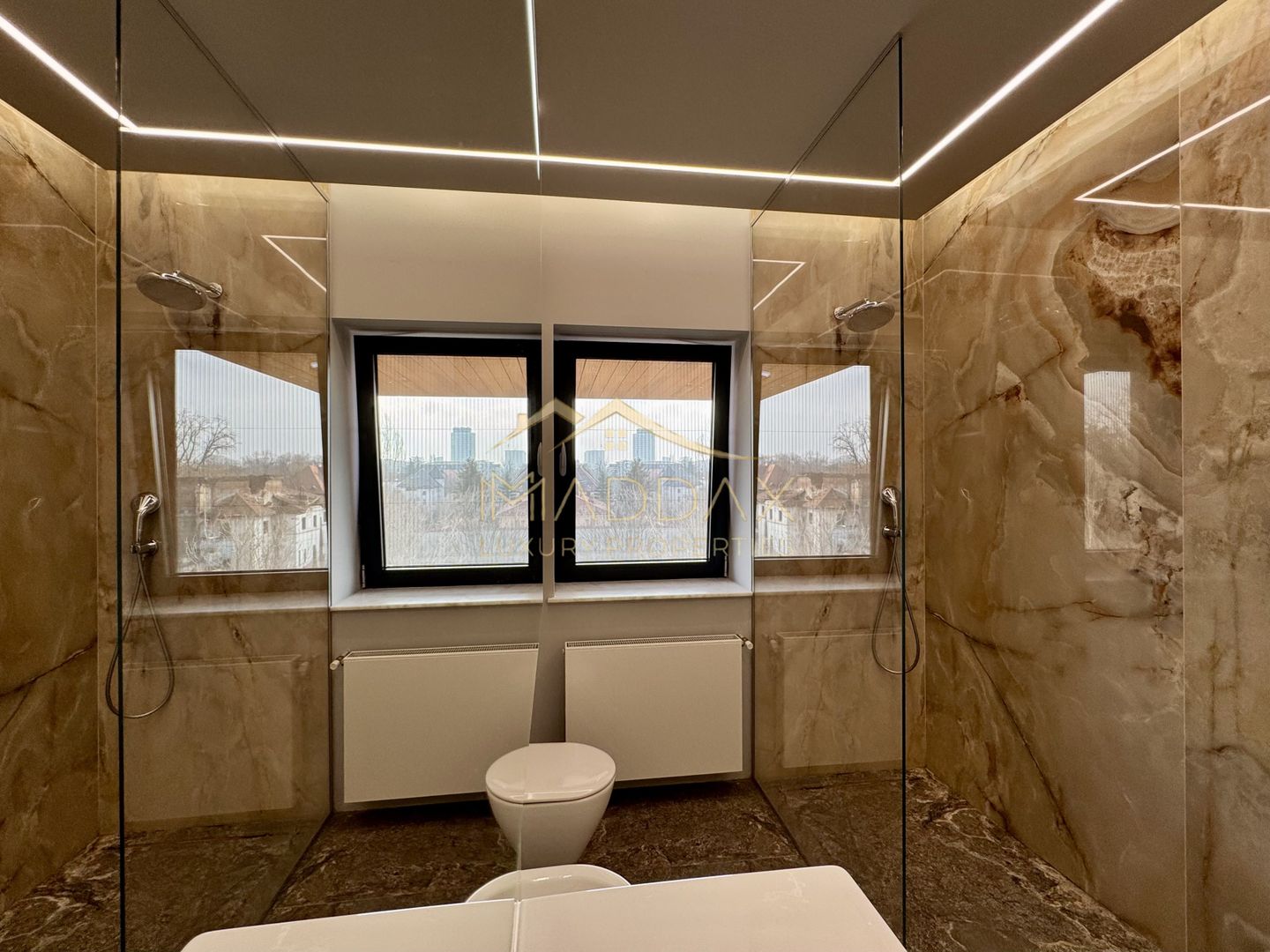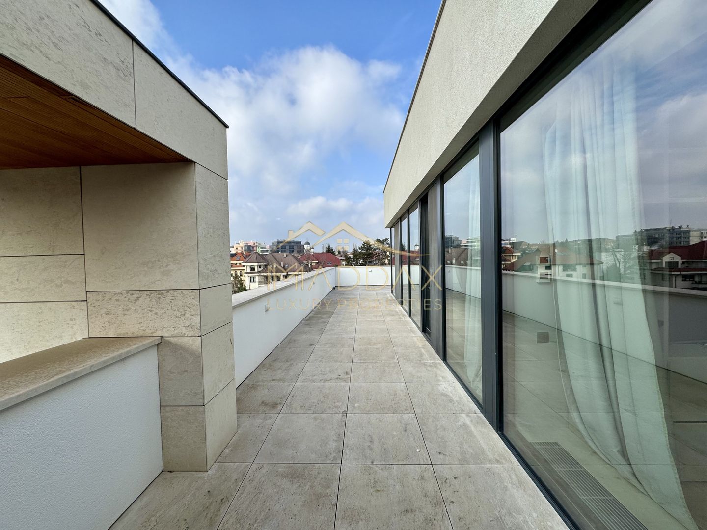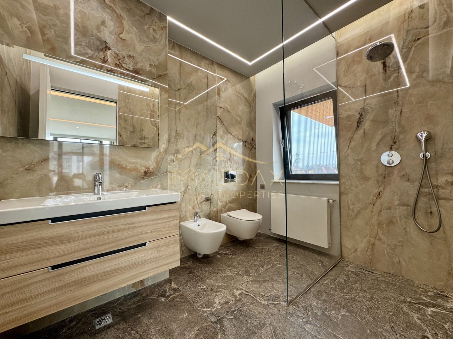 Balconul, cu o priveliște imbatabilă asupra peisajului urban din zona centrală, adaugă o notă de eleganță unei locuințe deja rafinate, fiind locul ideal pentru a contempla apusurile sau a savura o băutură deosebită în intimitatea propriului cămin. Toate elementele acestei reședințe se completează perfect, creând un spațiu care transcende confortul cotidian și își propune să ofere o experiență de viață unică, într-un cadru exclusivist și deosebit de prestigios.