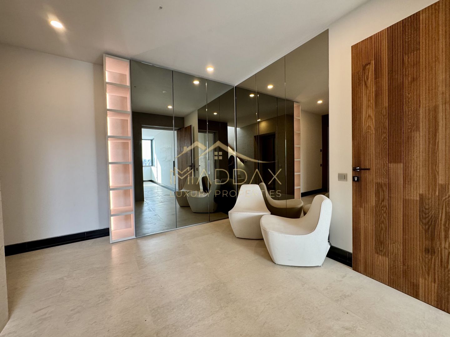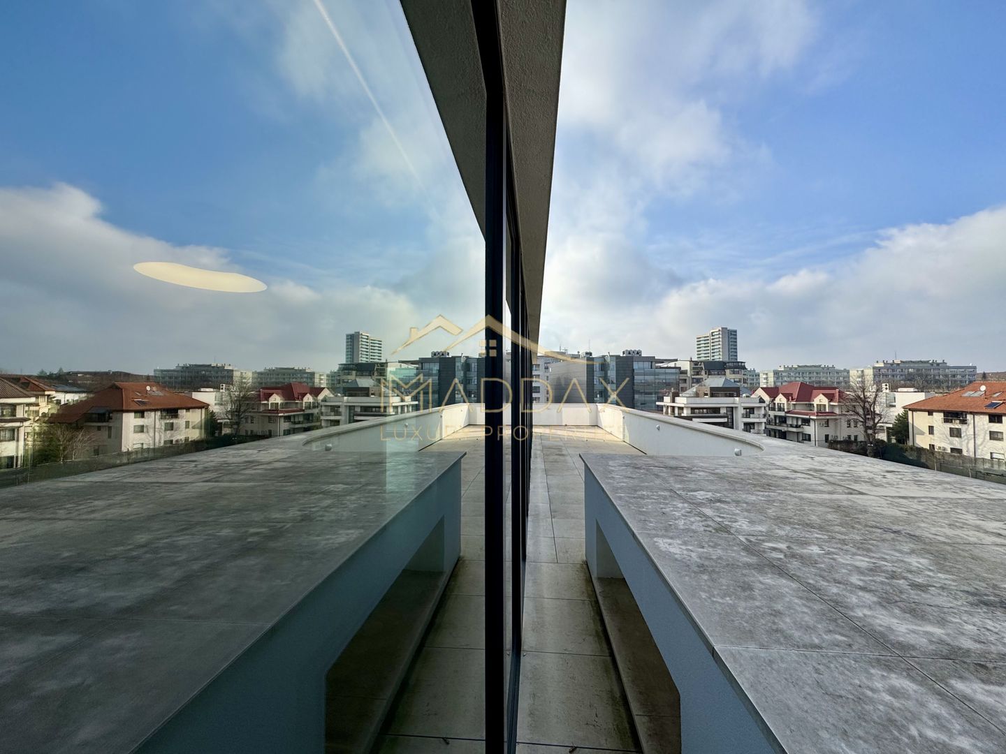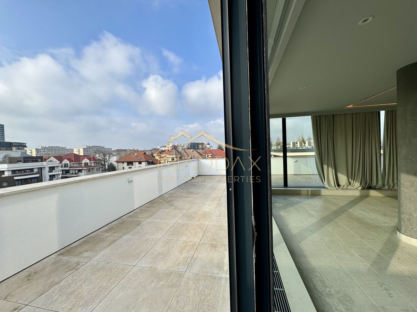 Balconul, cu o priveliște imbatabilă asupra peisajului urban din zona centrală, adaugă o notă de eleganță unei locuințe deja rafinate, fiind locul ideal pentru a contempla apusurile sau a savura o băutură deosebită în intimitatea propriului cămin. Toate elementele acestei reședințe se completează perfect, creând un spațiu care transcende confortul cotidian și își propune să ofere o experiență de viață unică, într-un cadru exclusivist și deosebit de prestigios.