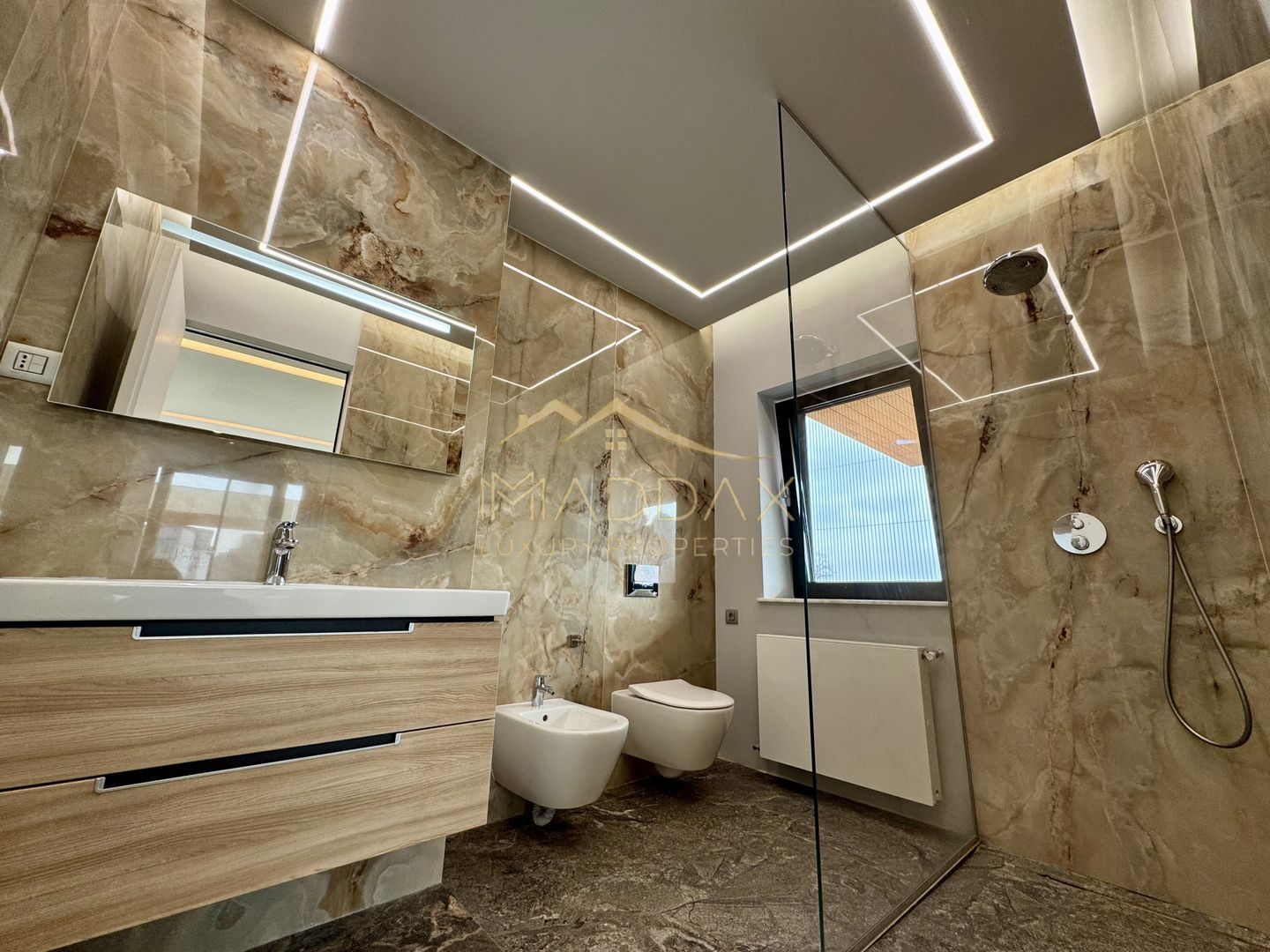Cele 3 băi, amenajate în stil contemporan, sunt dotate cu cele mai sofisticate echipamente sanitare și accesorii de design, transformând fiecare moment de intimitate într-o veritabilă experiență de wellness. Bucătăria, un spațiu vast și ultrafuncțional, este un veritabil sanctuar culinar, echipată cu aparatură de ultimă generație, ce satisface chiar și cele mai exigente gusturi ale unui cunoscător al gastronomiei fine.