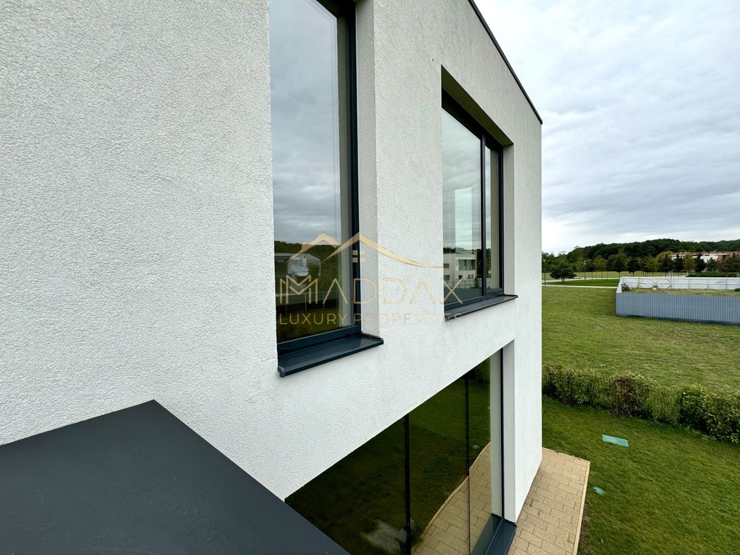 Această vilă modernă, amplasată într-o zonă exclusivistă în mijlocul naturii, se desfășoară pe un teren generos de 959 mp, oferind un spațiu de locuit de 420 mp. Construită cu cele mai înalte standarde de calitate, vila dispune de o structură superioară din cadre de beton armat, conferindu-i durabilitate și siguranță.