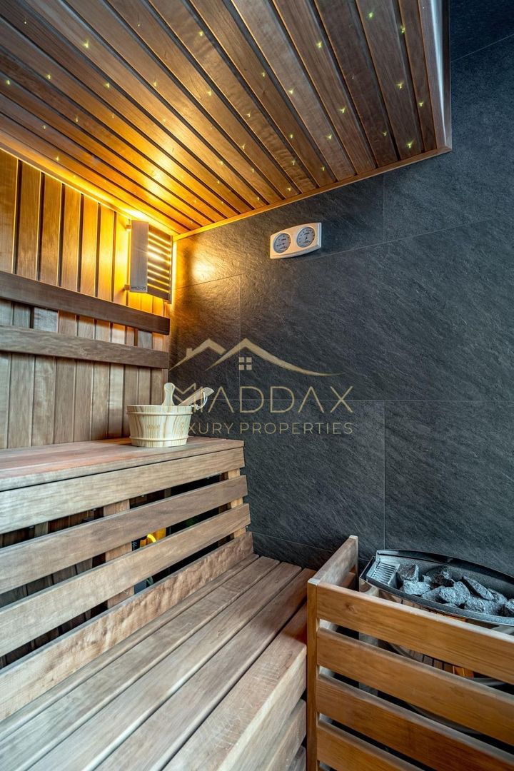 Proprietățile impresionează prin arhitectura modernă, compartimentarea eficientă și utilizarea materialelor premium. Zona privată de SPA include o **saună cu vedere panoramică** și un **jacuzzi exterior**, ideale pentru relaxare în intimitate. Dormitoarele sunt prevăzute cu **dressinguri realizate în Italia**, iar bucătăria premium, de origine germană, este complet echipată cu **tehnologie smart de ultimă generație**.