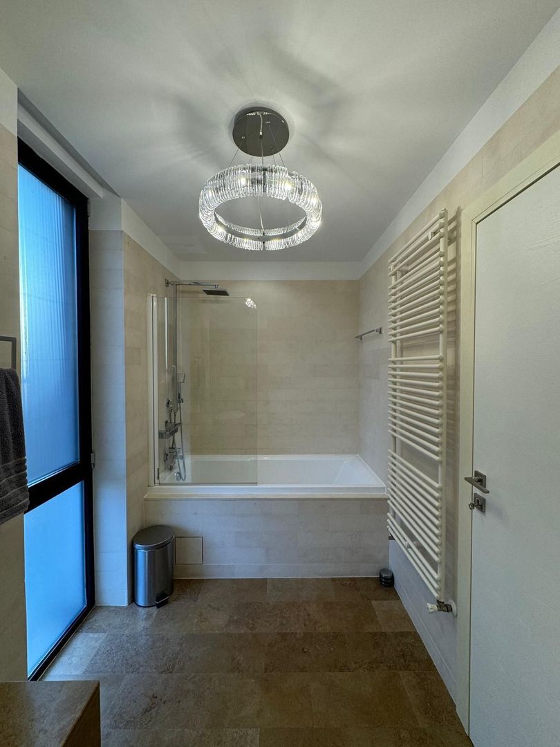 Compartimentarea este una moderna, dar clasica in acelasi timp, fiind complet decomandat, fiecare dormitor beneficiind de baie proprie, iar living-ul de un grup sanitar de serviciu, precum si de o bucatarie inchisa.