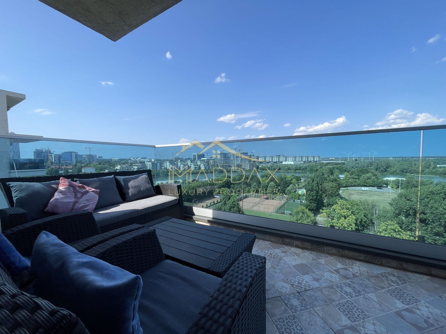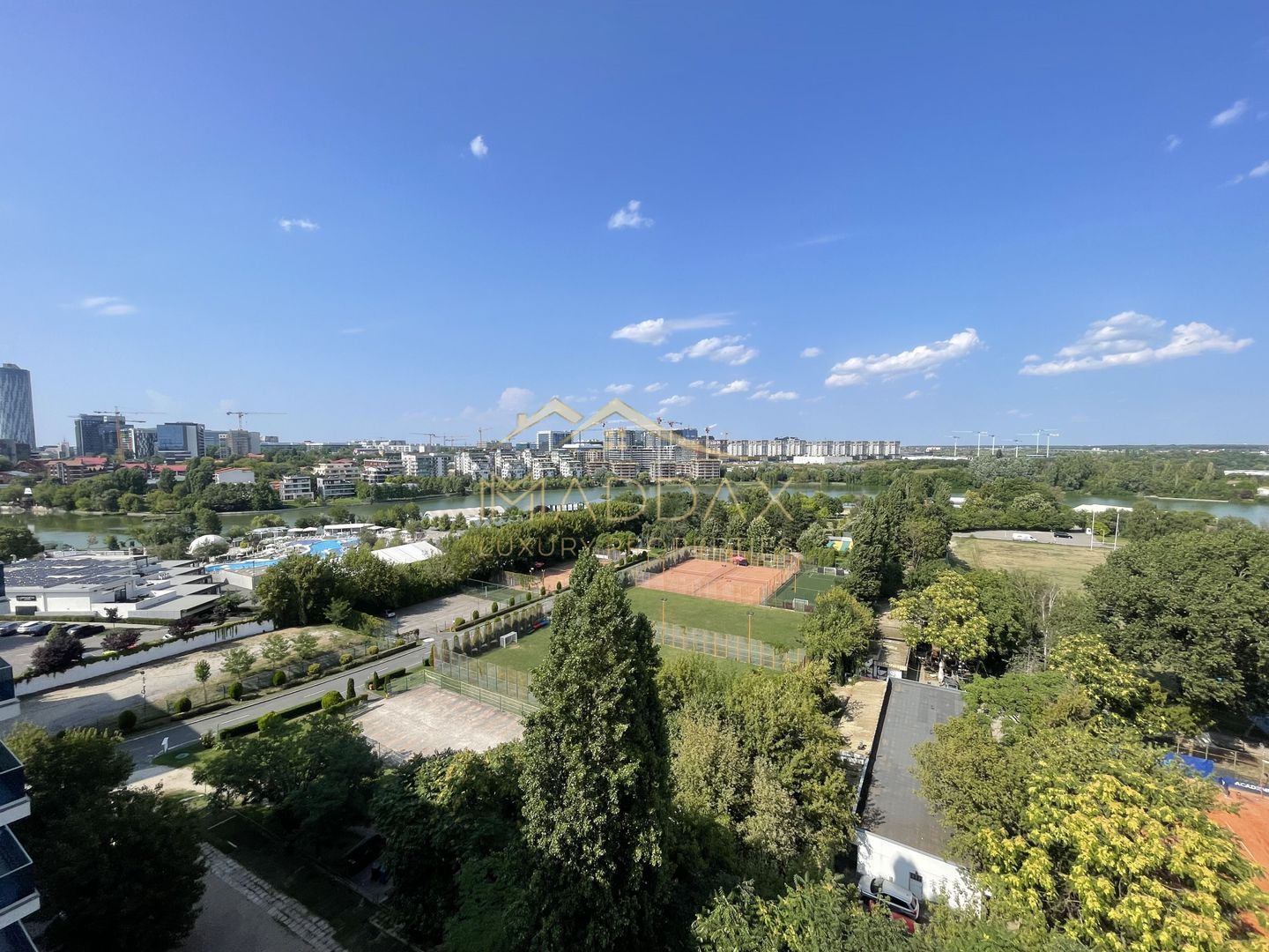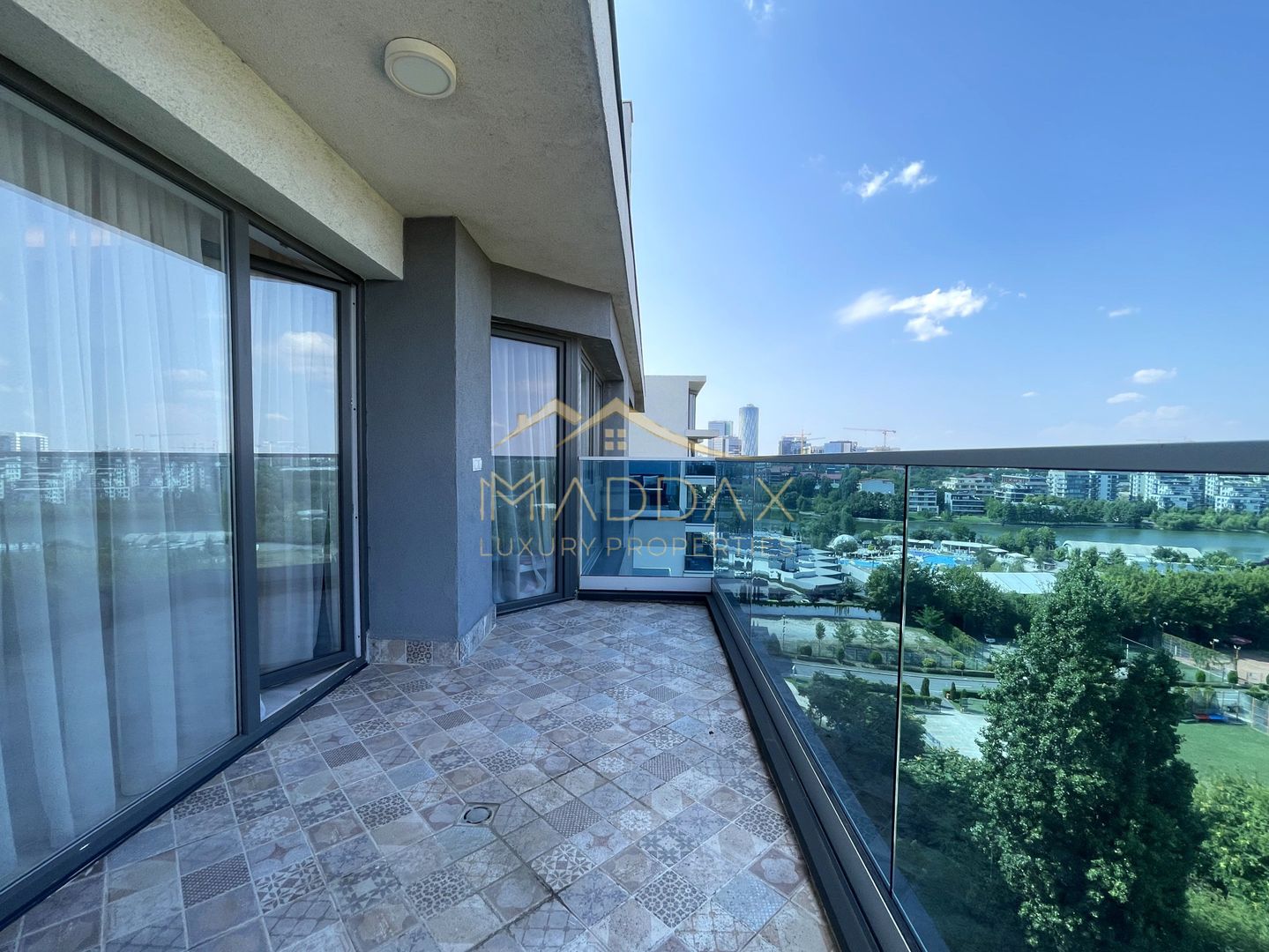 Apartamentul are 4 camere cu o suprafata utila de 122mp si 2 terase cu suprafata de 8,7mp fiecare cu vedere directa spre Lacul Floreasca si intimitate deplina.