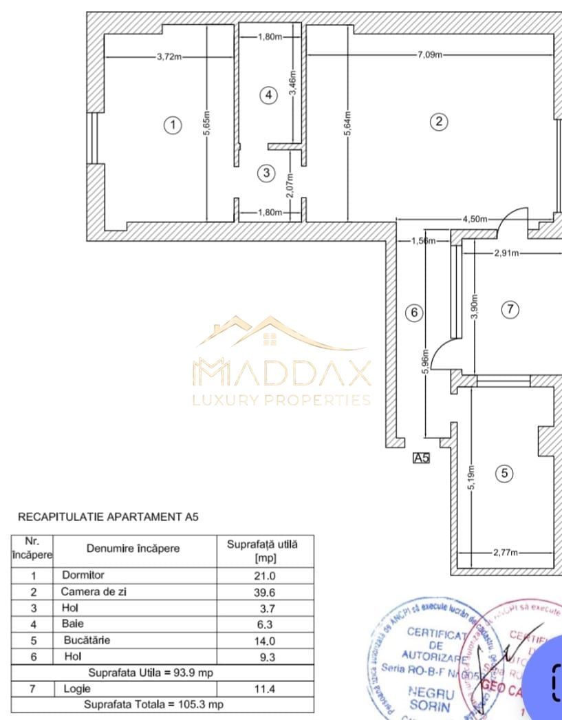 * Suprafață utilă de 94 mp, cu 106 mp în total, incluzând balconul