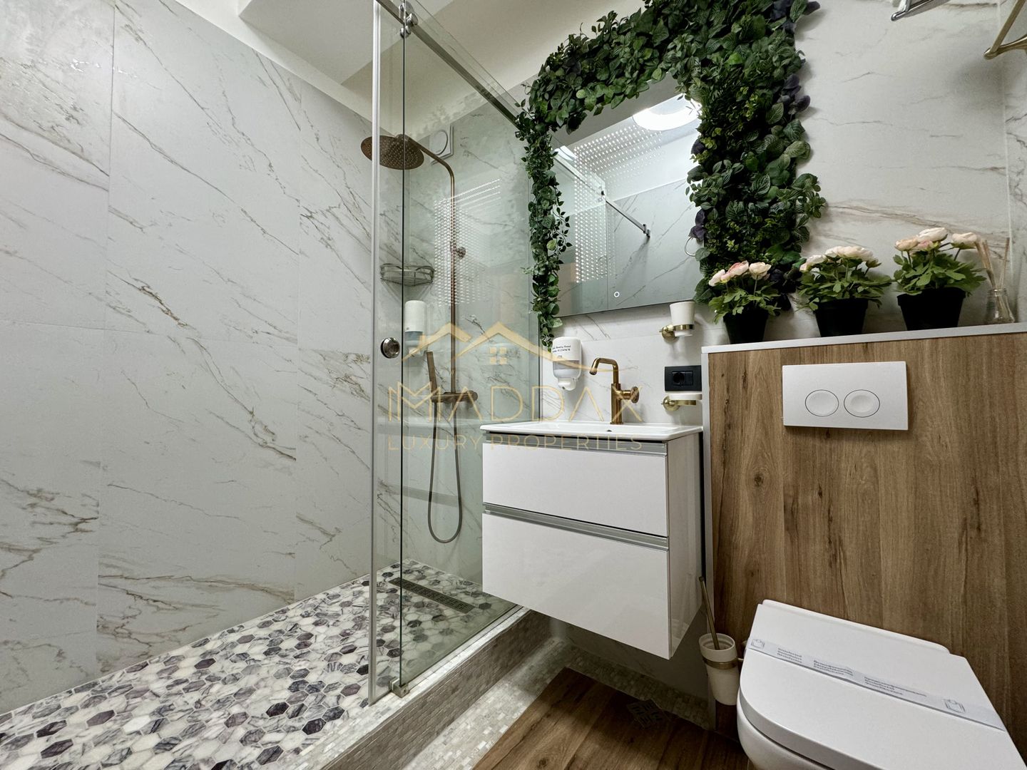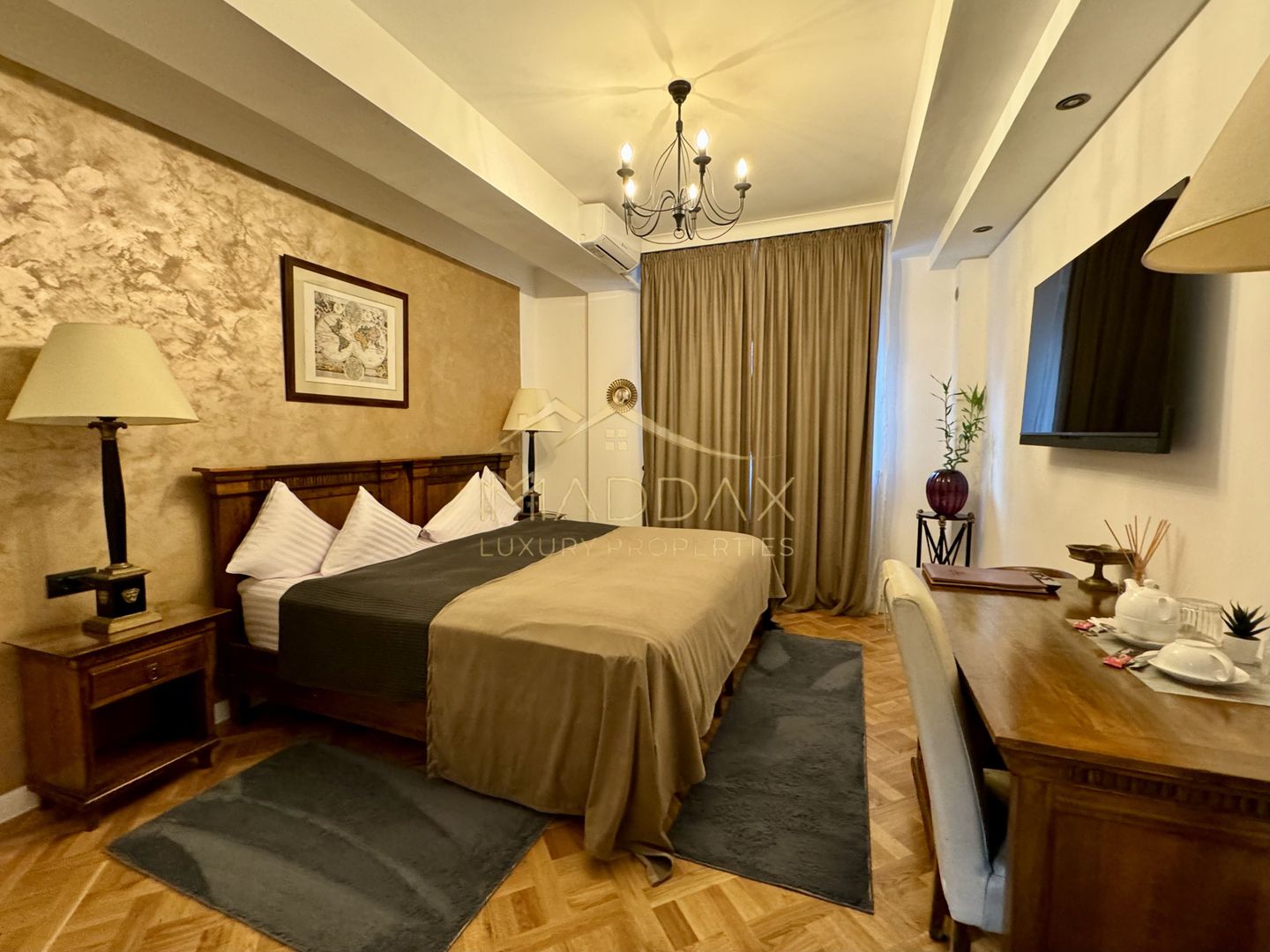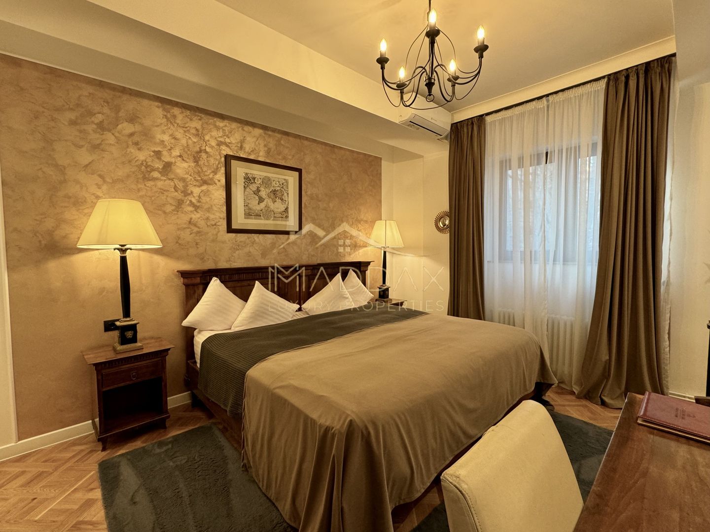 Cu piese de mobilier din lemn masiv, apartamentul emite o atmosferă caldă și primitoare, în timp ce îmbină perfect funcționalitatea modernă cu eleganța clasică. Fiecare detaliu, fie că este vorba despre mobilierul de cea mai înaltă calitate sau obiectele de decor alese cu grijă, adaugă o notă distinctivă și sofisticată.