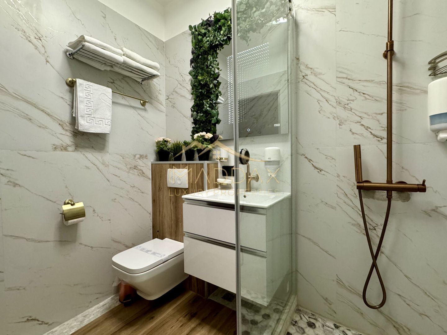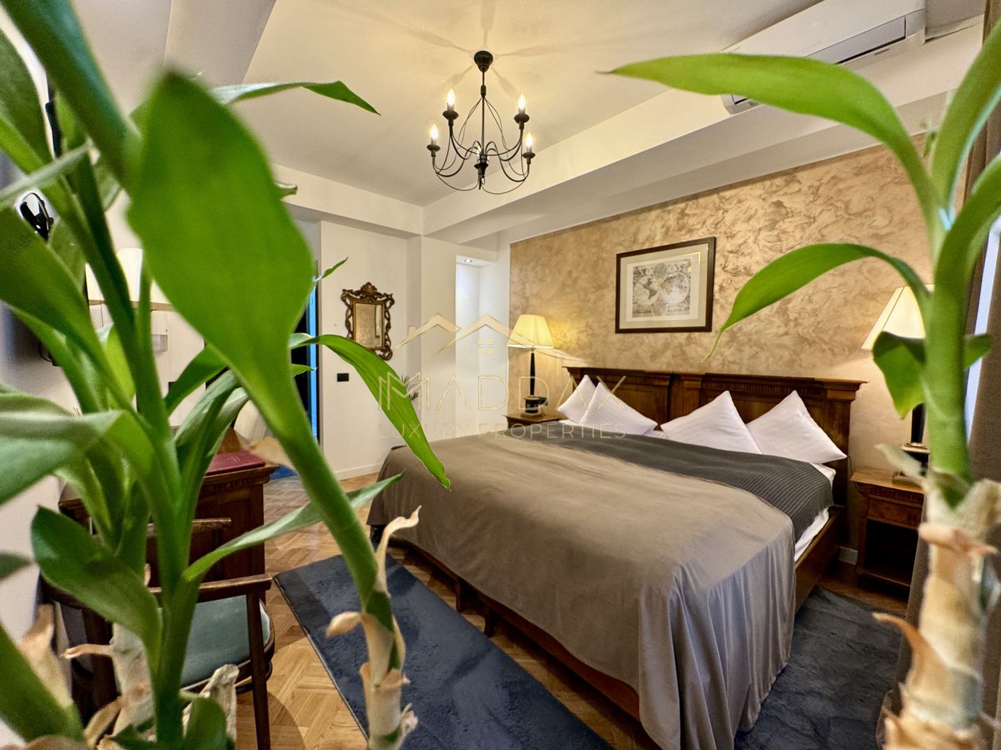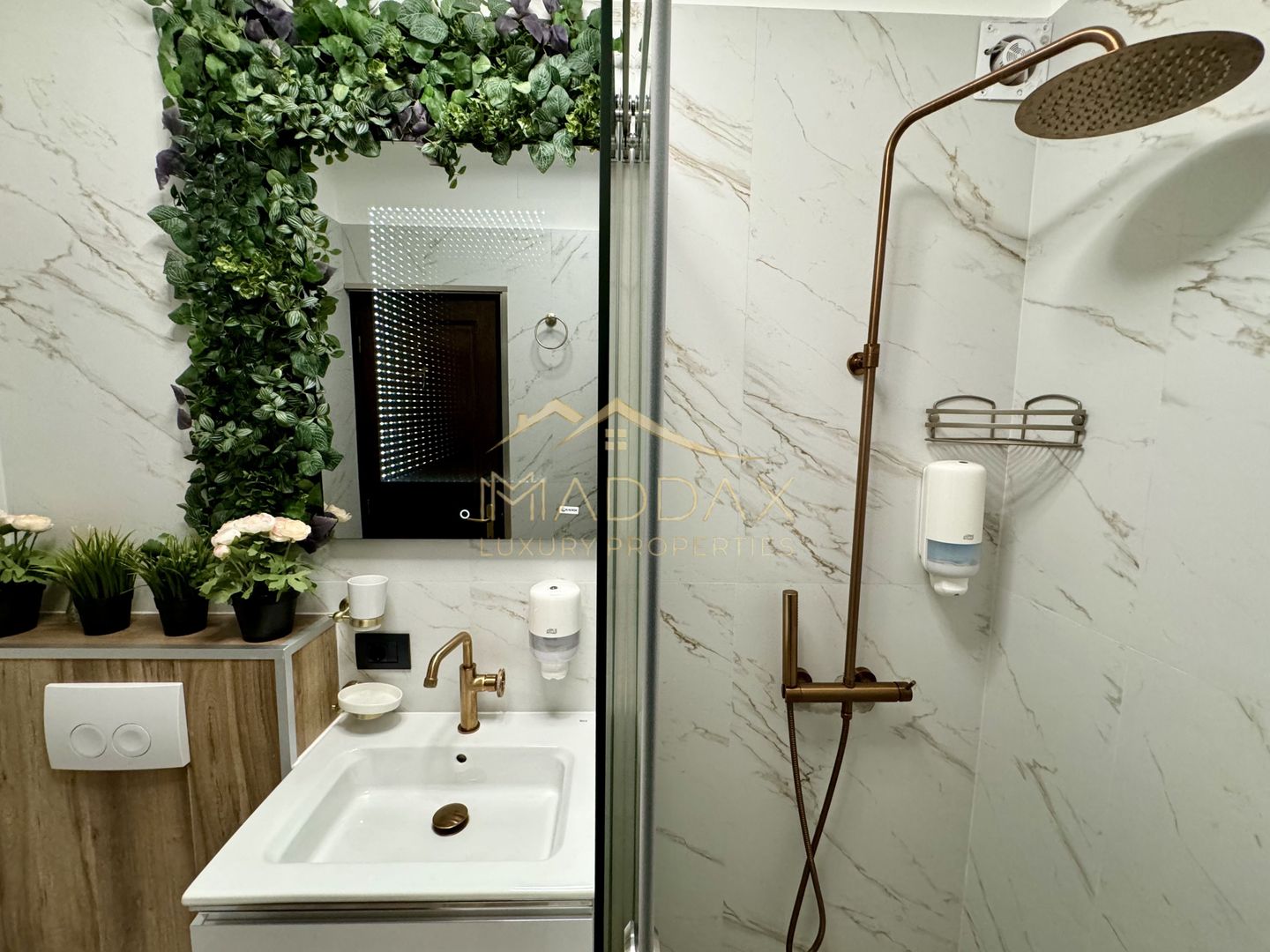 Cu piese de mobilier din lemn masiv, apartamentul emite o atmosferă caldă și primitoare, în timp ce îmbină perfect funcționalitatea modernă cu eleganța clasică. Fiecare detaliu, fie că este vorba despre mobilierul de cea mai înaltă calitate sau obiectele de decor alese cu grijă, adaugă o notă distinctivă și sofisticată.