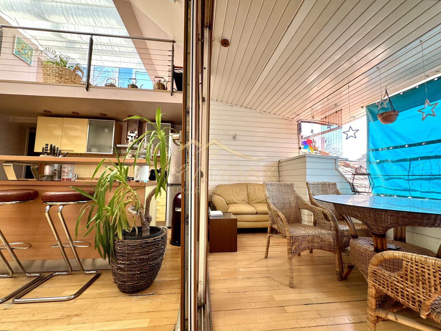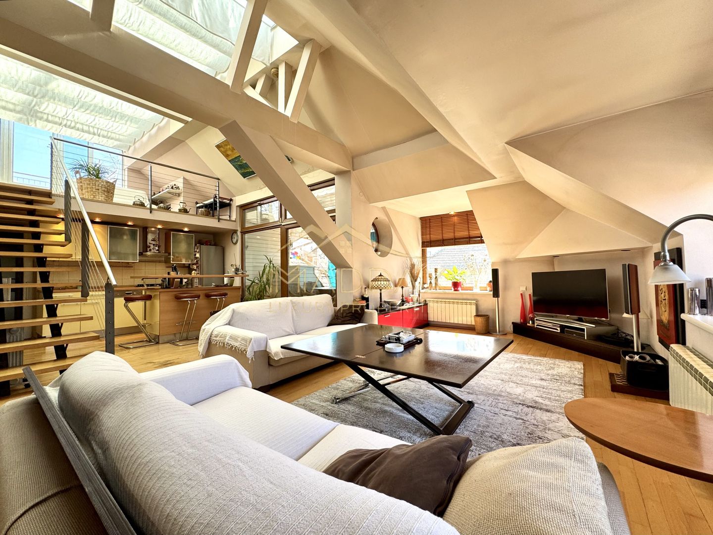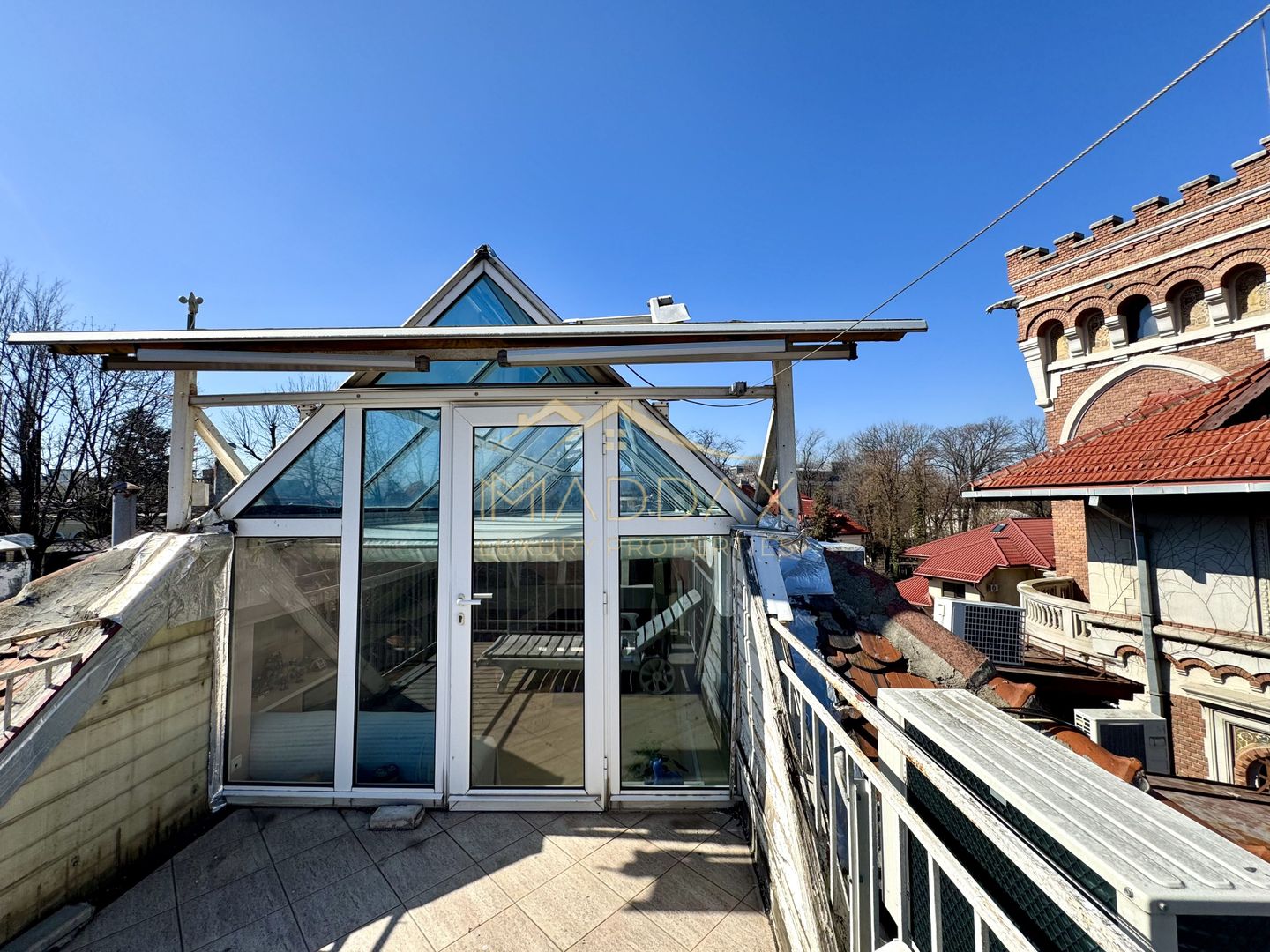 Apartamentul este situat la mansardă și dispune de un living luminos, trei dormitoare spațioase, o bucătărie complet utilată, două băi generoase si doua terase cu vedere libera inspre oras, un refugiu in care poti sa citesti, sau sa te relaxezi pe un sezlong.