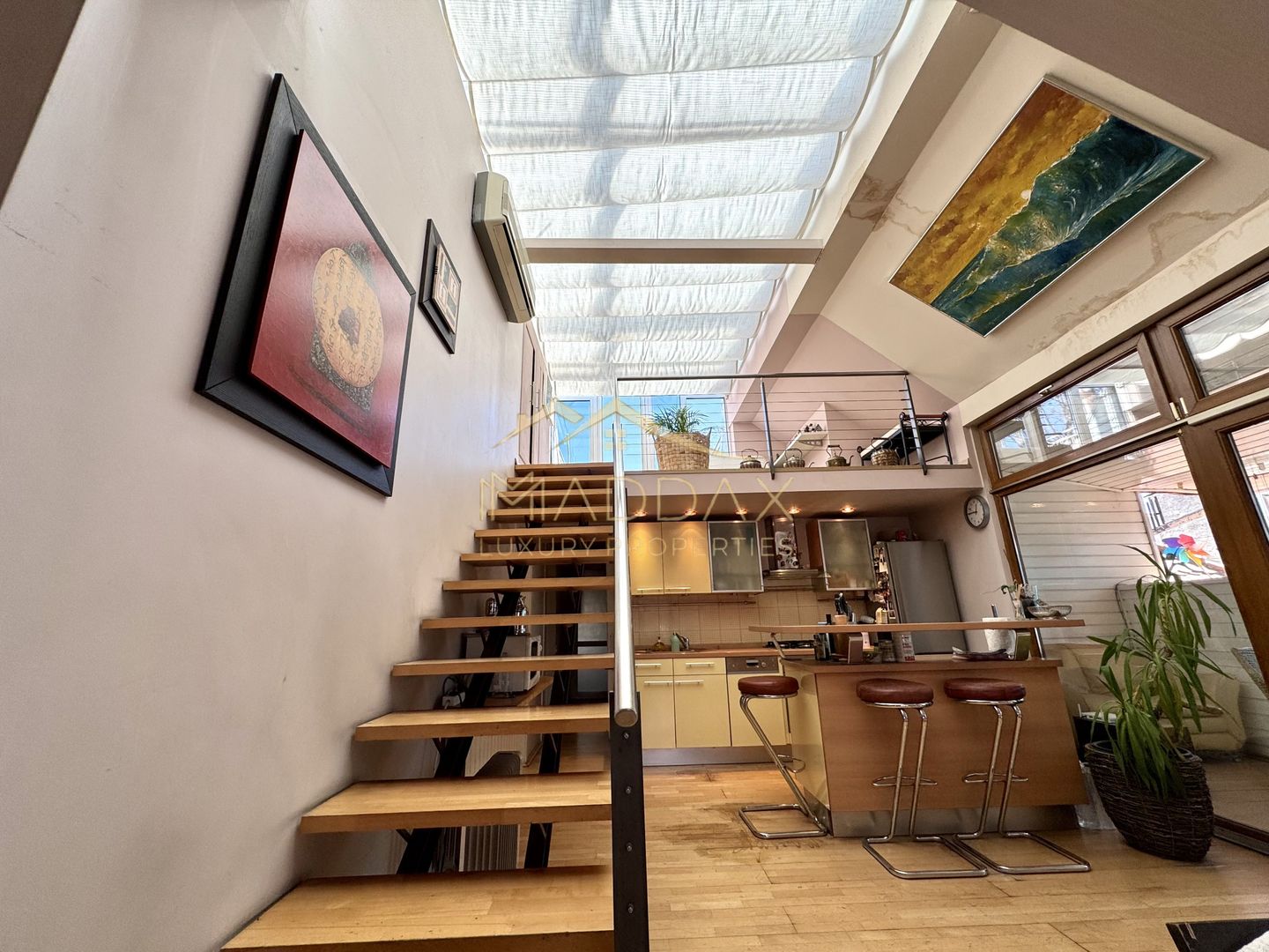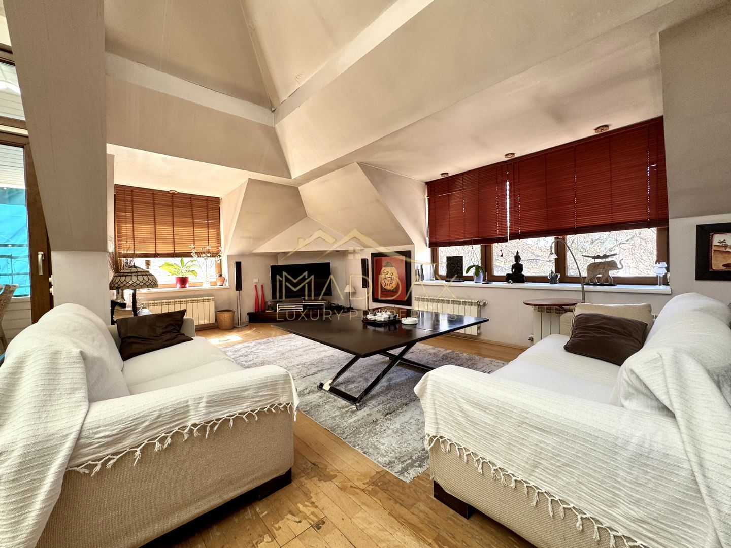 Maddax are placerea sa prezinte un apartament unic, situat la mansarda unei vile elegante construită în anul 1940, într-una dintre cele mai prestigioase zone ale capitalei, Kiseleff.