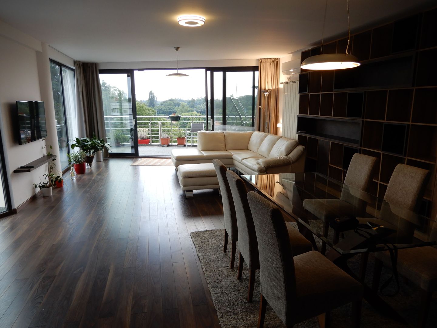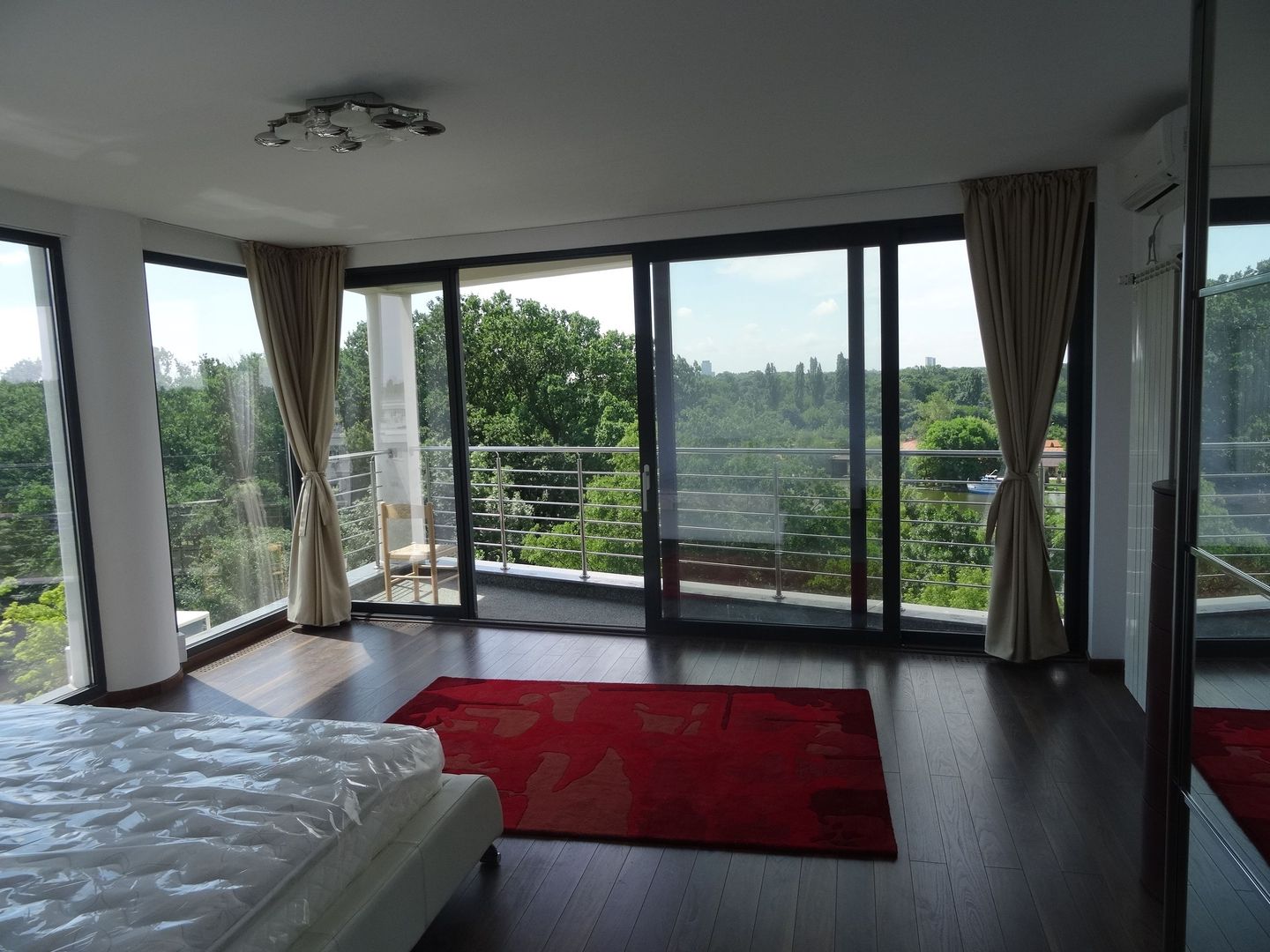 Livingul spatios de 50 mp, este locul ideal de petrecere alaturi de familie si prieteni, dormitor matrimonial cu o suprafata de 26.6 mp , cu ferestre franceze si vedere libera spre parc si lac.
