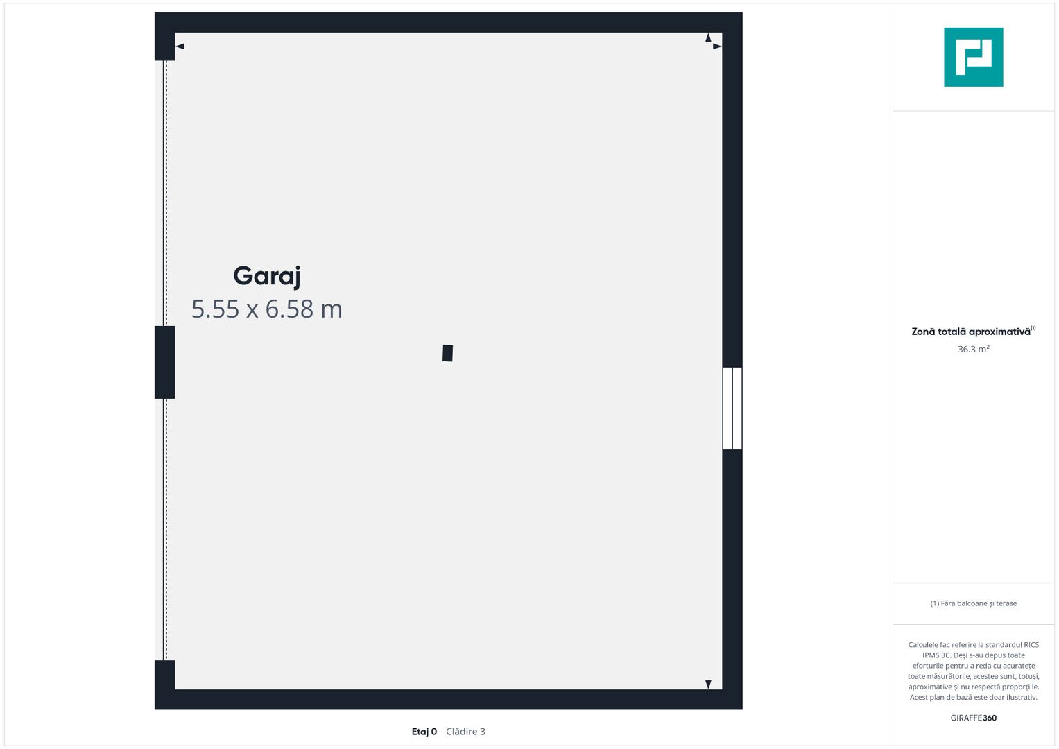 Garaj dublu pentru 2 mașini, cu porți electrice la telecomandă.