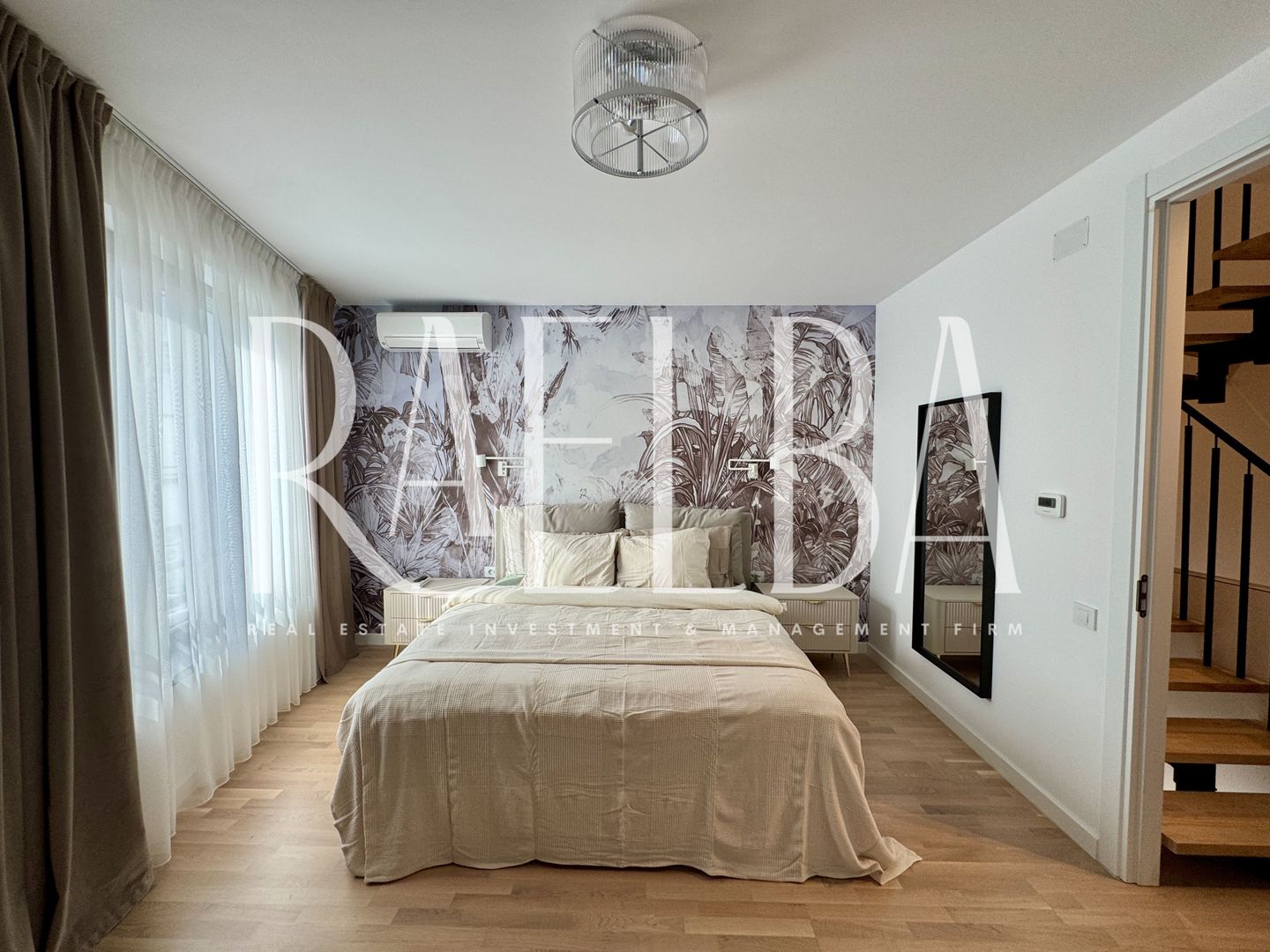 La etajul 1 se află două dormitoare, ambele cu baie proprie, iar la etajul 2 există un dormitor, o baie și un dressing. Casa este complet finisată cu cele mai calitative materiale și finisaje. La intrare este instalată o ușă din metal. Există gresie și faianță, sunt instalate uși celulare din lemn în interior, ferestre cu geamuri termopane cu trei foi și pereți finisați cu vopsele lavabile.