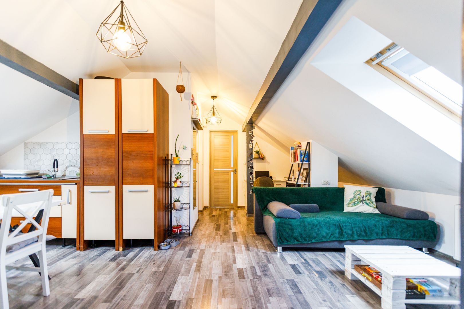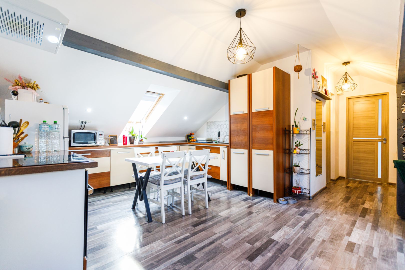 Mansardă: living, bucătărie și baie – perfectă pentru o familie extinsă sau zonă separată de locuit