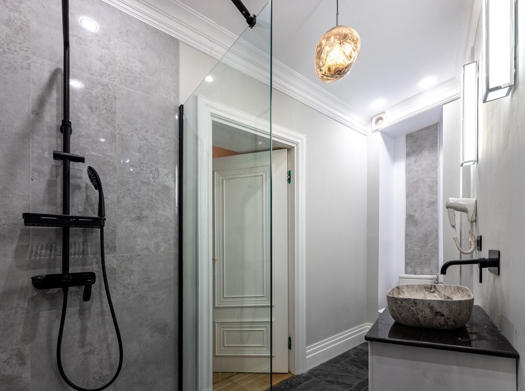 Proprietatea poate fi împărțită în 3 apartamente de 3 camere și un apartament de 3 camere de tip triplex.