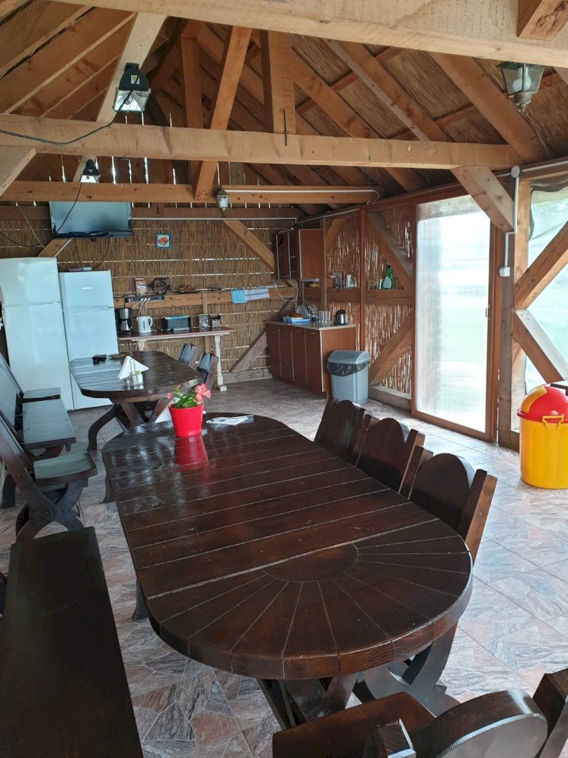 Un foisor in suprafata construita de 34 mp, pardoseala de beton placat cu gresie, structura din lemn, acoperis din stuf, 2 laturi inchise cu scandura si doua laturi inchise cu plasa si protejate cu folie transparenta retractabila. Foisorul e utilizat ca loc de relaxare, servire a mesei, impartasit cu prietenii povesti pescaresti pana tarziu in noapte, fiind dotat cu toate cele necesare (mese,banci,scaune,frigidere,TV,chiuveta,vesela,electrocasnice mici).