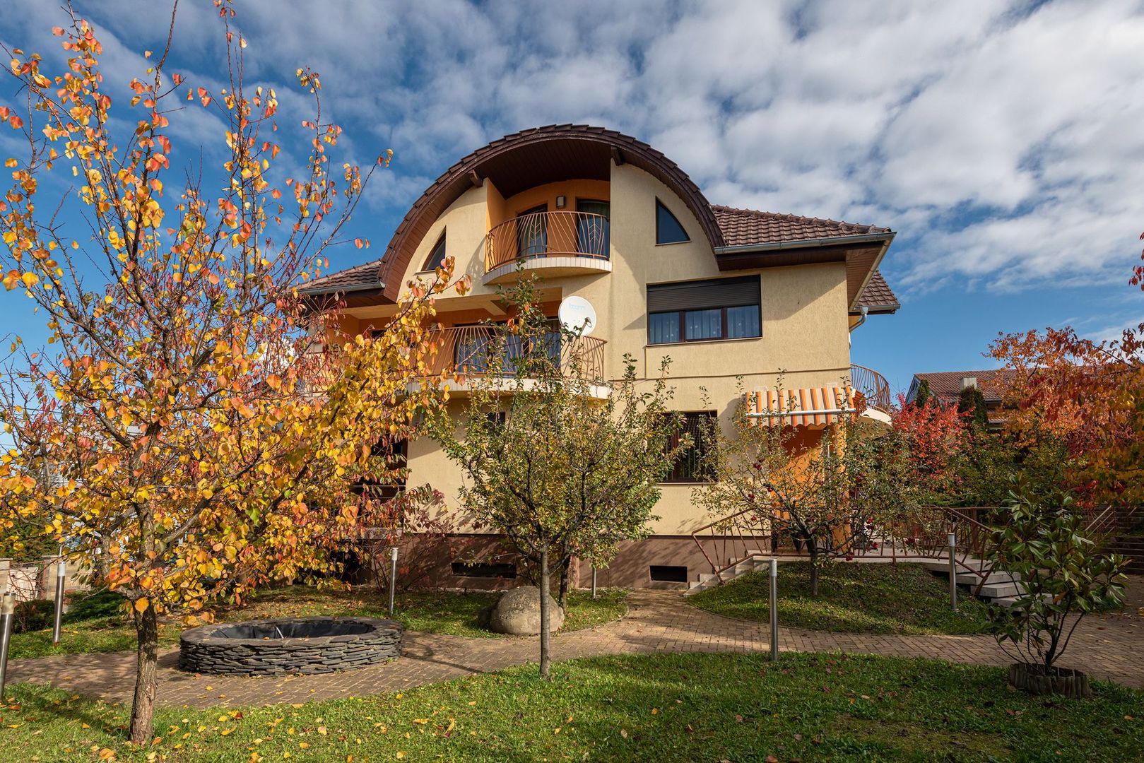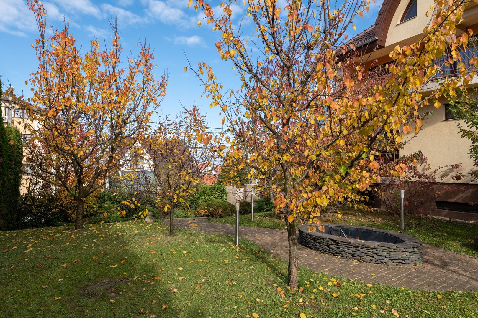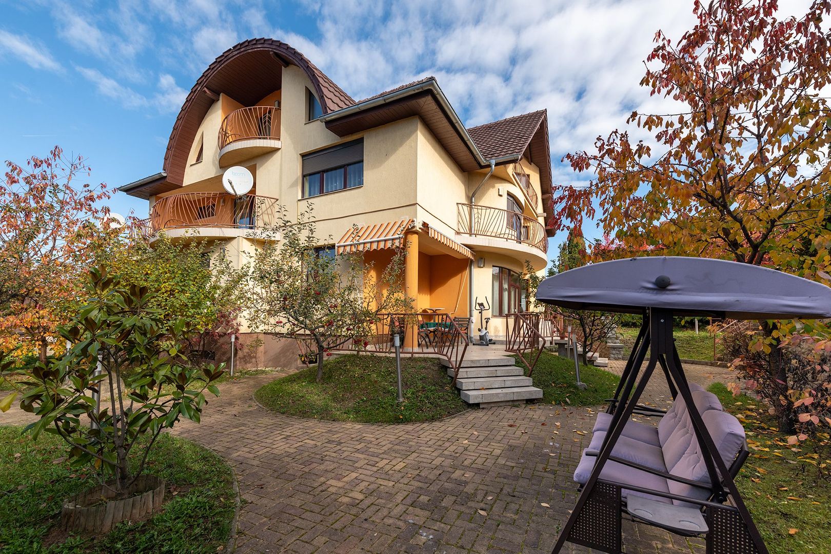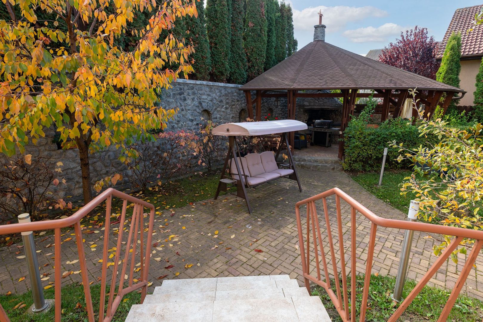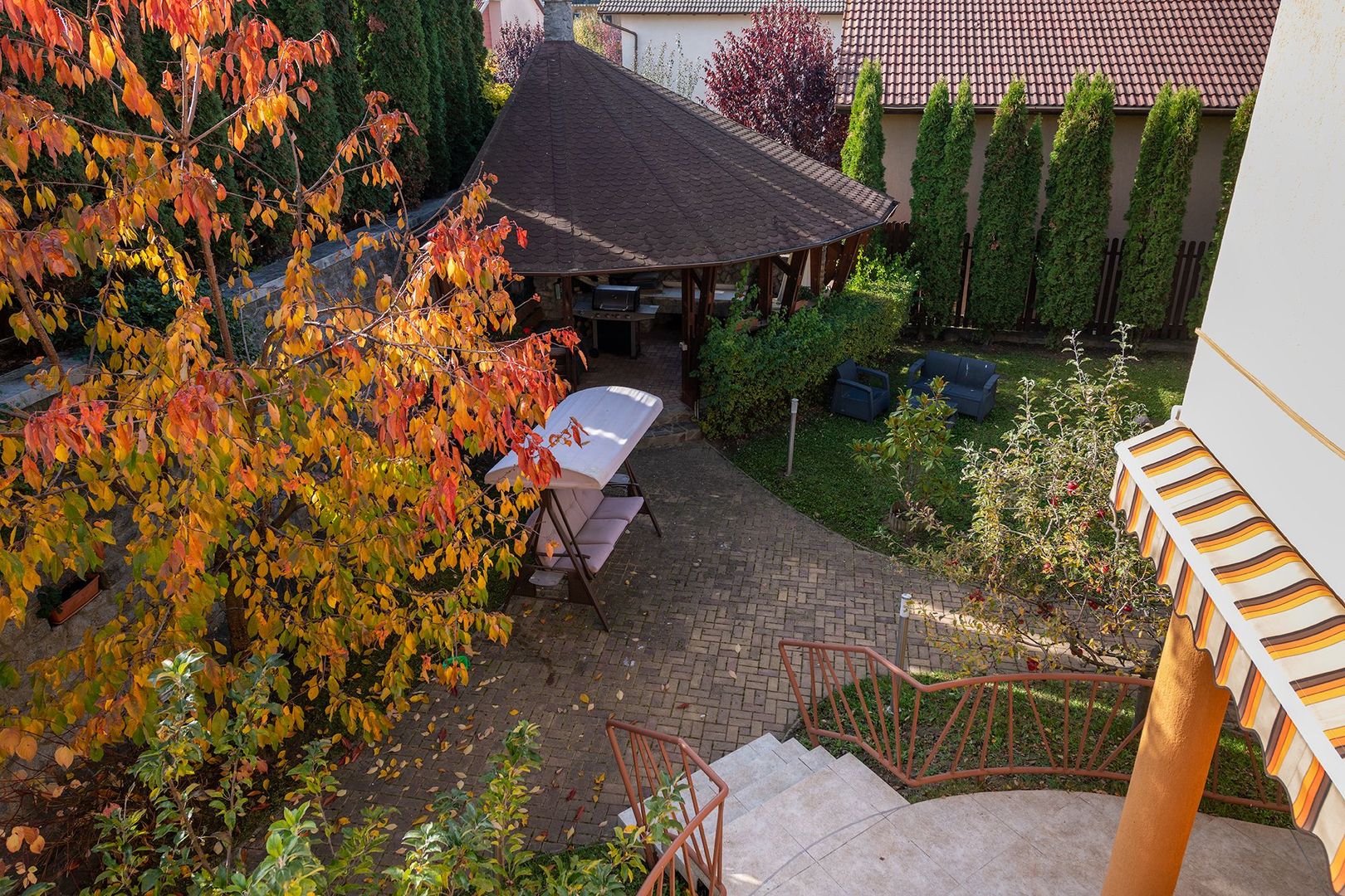 Curtea generoasă este plină de pomi fructiferi de toate soiurile, creând o ambianță intimă și un sentiment de relaxare. Un foișor de 40 mp e refugiul familiei în zilele călduroase de vară.