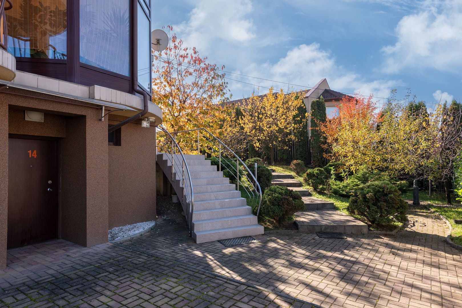 Vila este situată pe o stradă liniștită, fără trafic.