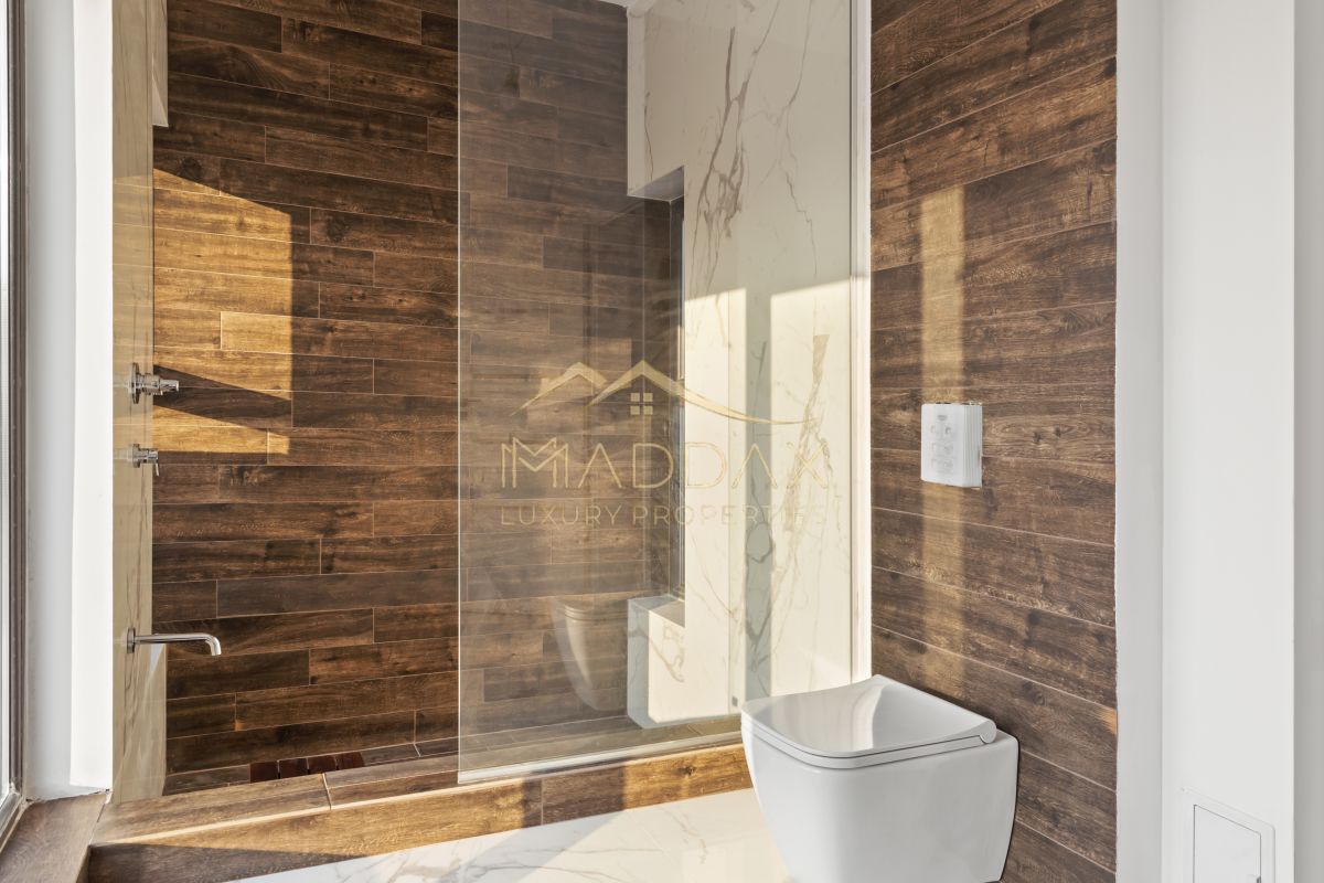 Proiectată pentru confort și rafinament, proprietatea oferă un stil de viață modern, spații generoase și lumină naturală din abundență, datorită geamurilor mari.