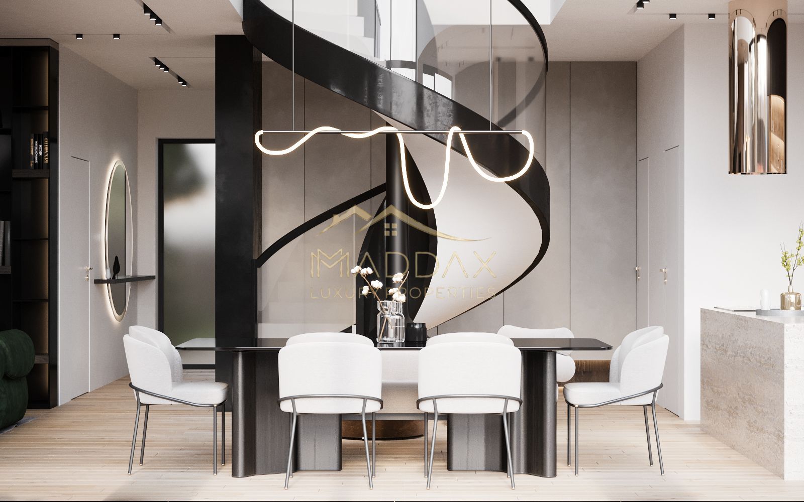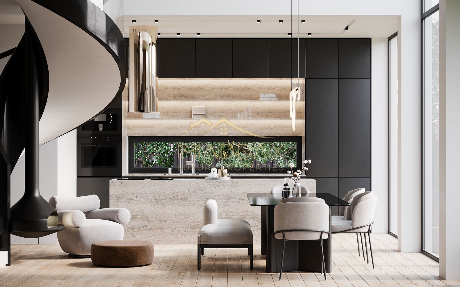Maddax are placerea sa prezinte o vila exclusivista in linii arhitecturale curate și o estetică minimalistă ce adoptă conceptul de plan deschis pentru a crea un spațiu aerisit și confortabil, casa îmbină curenții de arhitectură contemporană și modernă utilizându-se de materiale naturale precum sticlă, metal și lemn pentru a integra peisajul înconjurător.