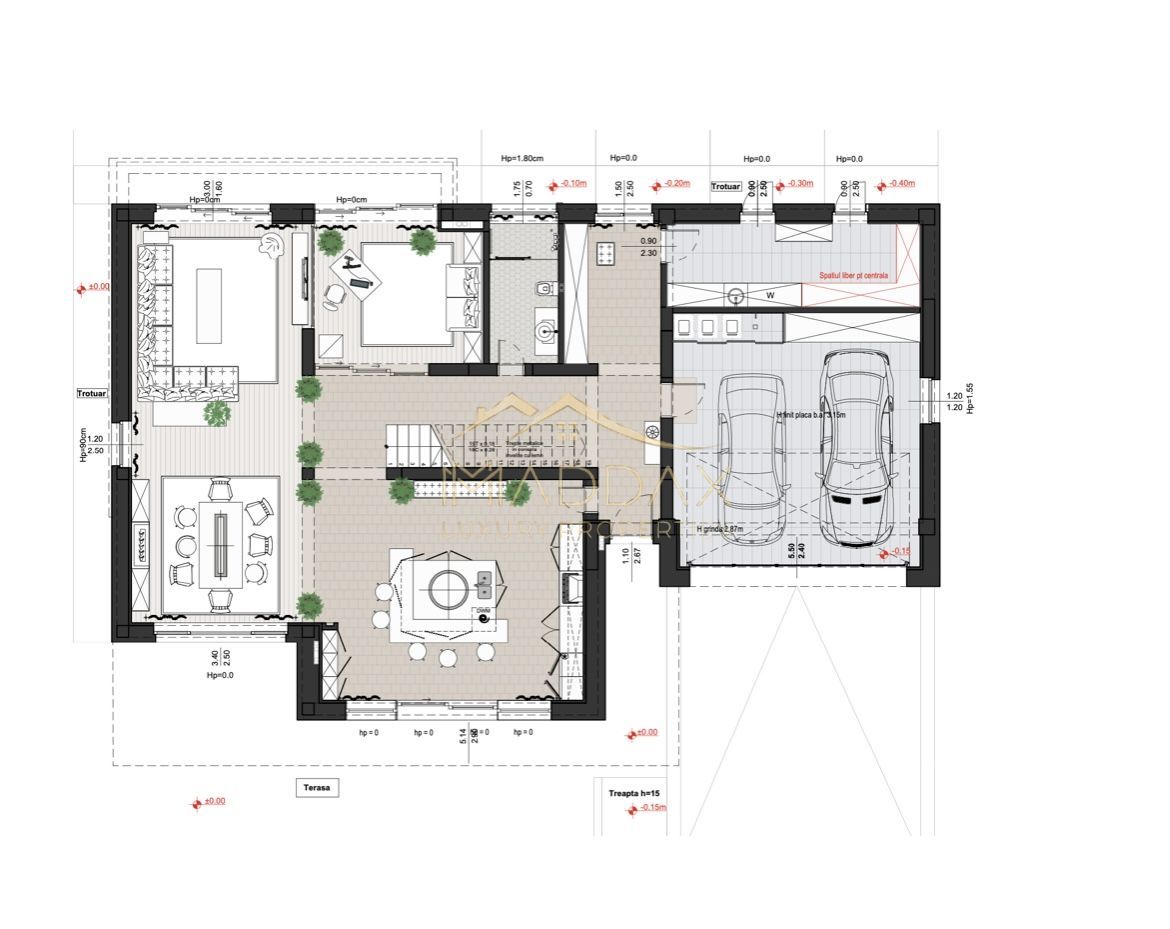 Terasa superioara are pregatita infrastructura pentru montaj sauna si jacuzzi, precum si pentru conectarea panourilor fotovoltaice.